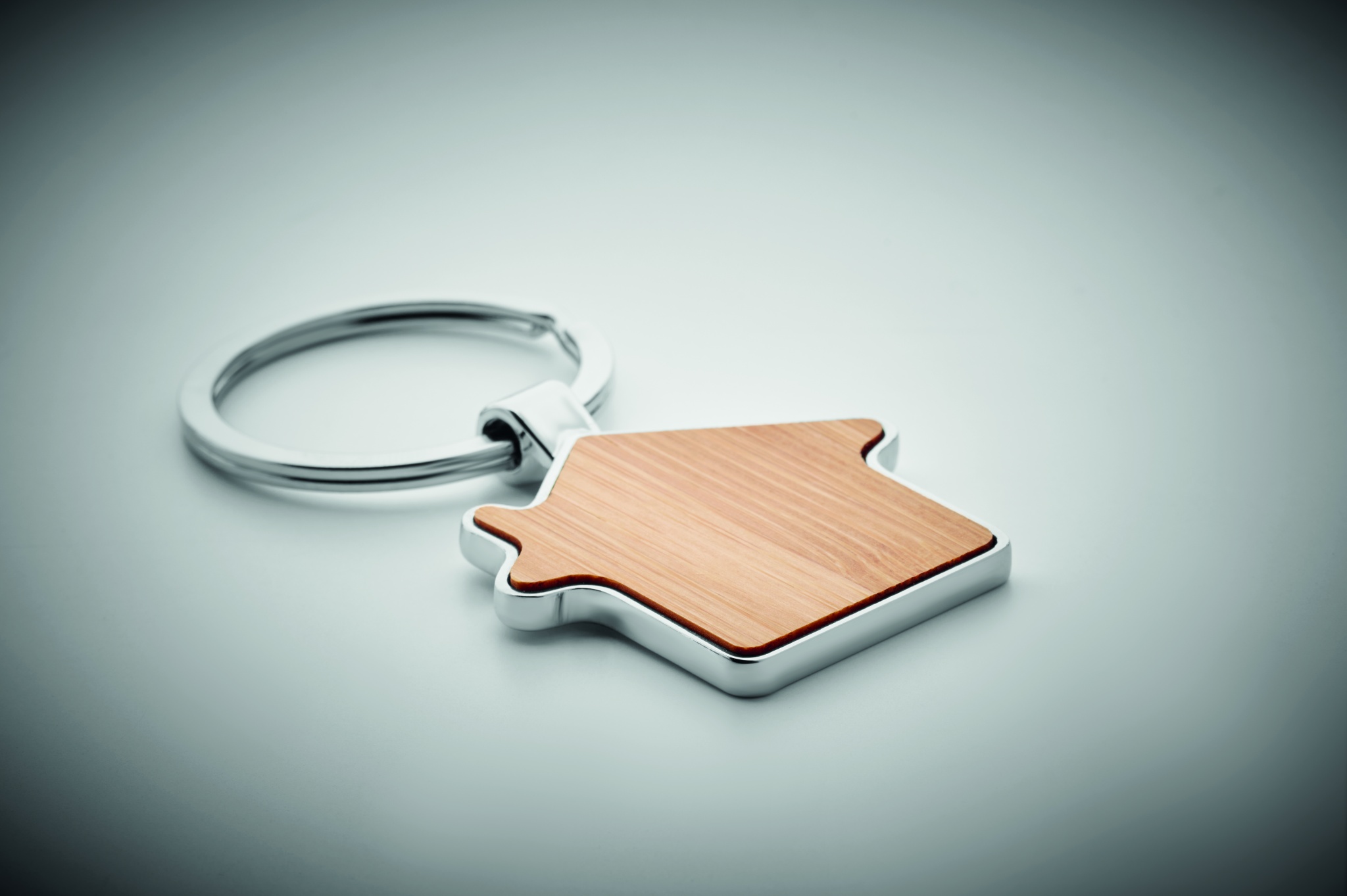 Talon muotoinen sinkkiseoksesta valmistettu avaimenperä bambu yksityiskohdalla. Luonnollisen materiaalin (bambu) vuoksi, tuotteiden värissä/ koossa saattaa olla erinäisyyksiä ja tämä voi vaikuttaa painatuksen lopputulokseen.
