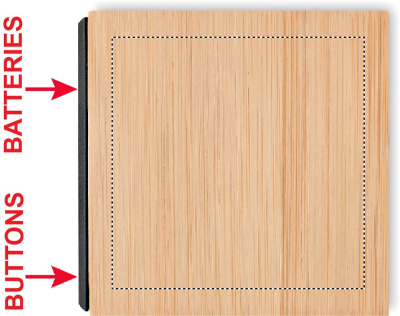 Bambuinen LED herätyskello, lämpötilanäytöllä. Sisältää AC-DC2 pistoke laturin, ei sovellu käytettäväksi UK. Luonnollisen materiaalin (bambu) vuoksi, tuotteiden värissä/ koossa saattaa olla erinäisyyksiä ja tämä voi vaikuttaa painatuksen lopputulokseen. 4 AAA patteria ei sisälly toimitukseen.