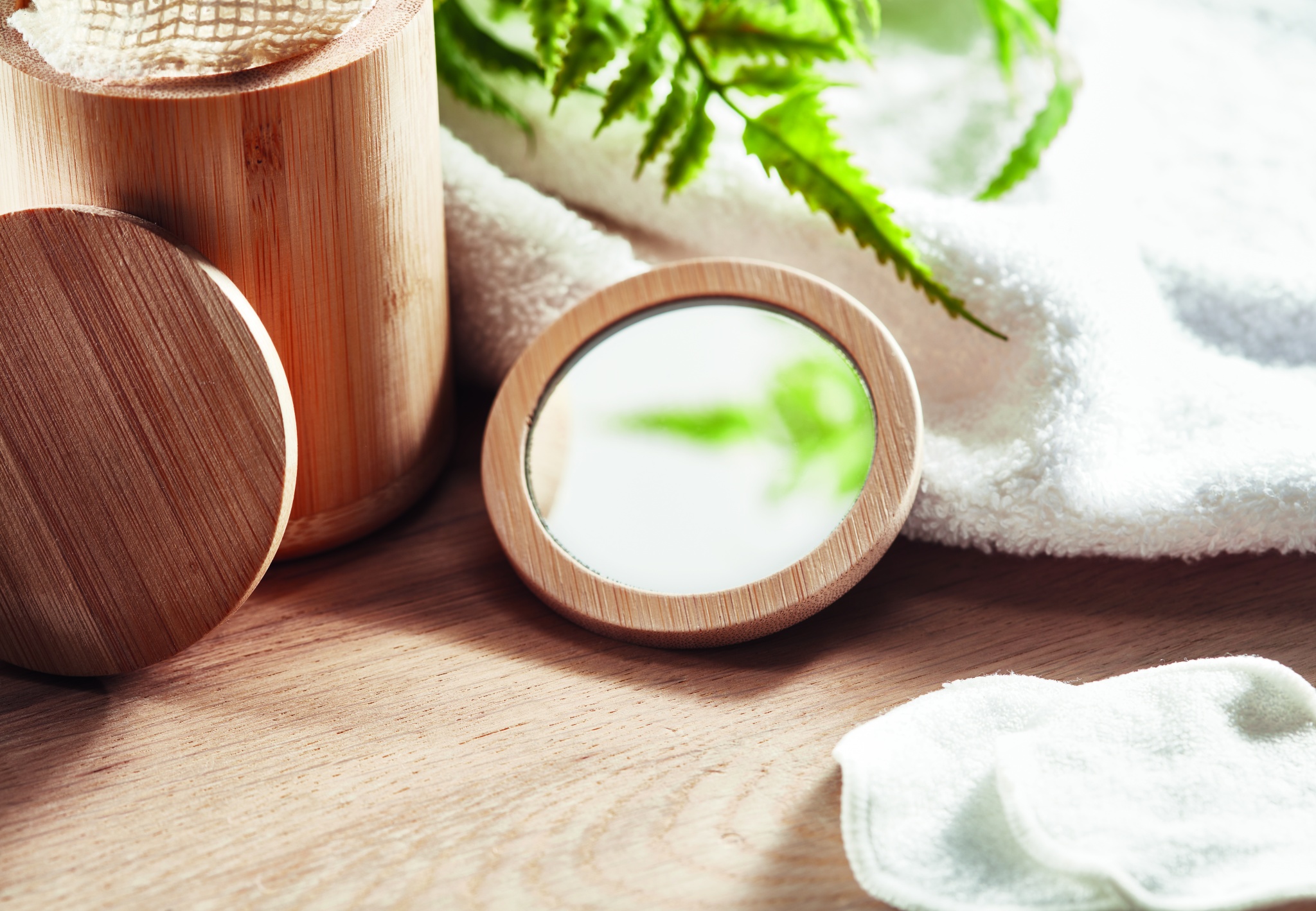 Pyöreä bambusta valmistettu meikkipeili, pakattuna puuvilla pussiin. Luonnollisen materiaalin (bambu) vuoksi, tuotteiden värissä/ koossa saattaa olla erinäisyyksiä ja tämä voi vaikuttaa painatuksen lopputulokseen.