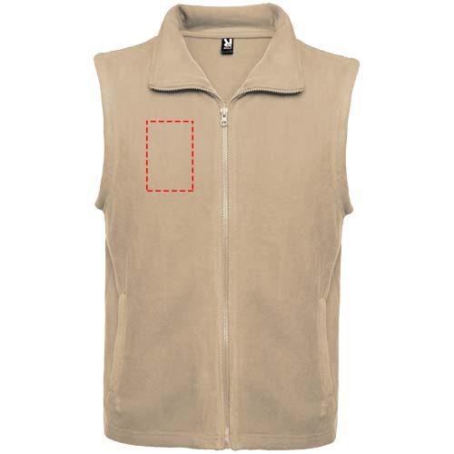 Fleece-liivi korkealla kauluksella ja saman sävyisellä vetoketjulla. Sivutaskut saman sävyisillä vetoketjuilla. Irrotettava tuotemerkki. Kuvan malli on 185 cm pitkä ja hänellä on päällään koko M.