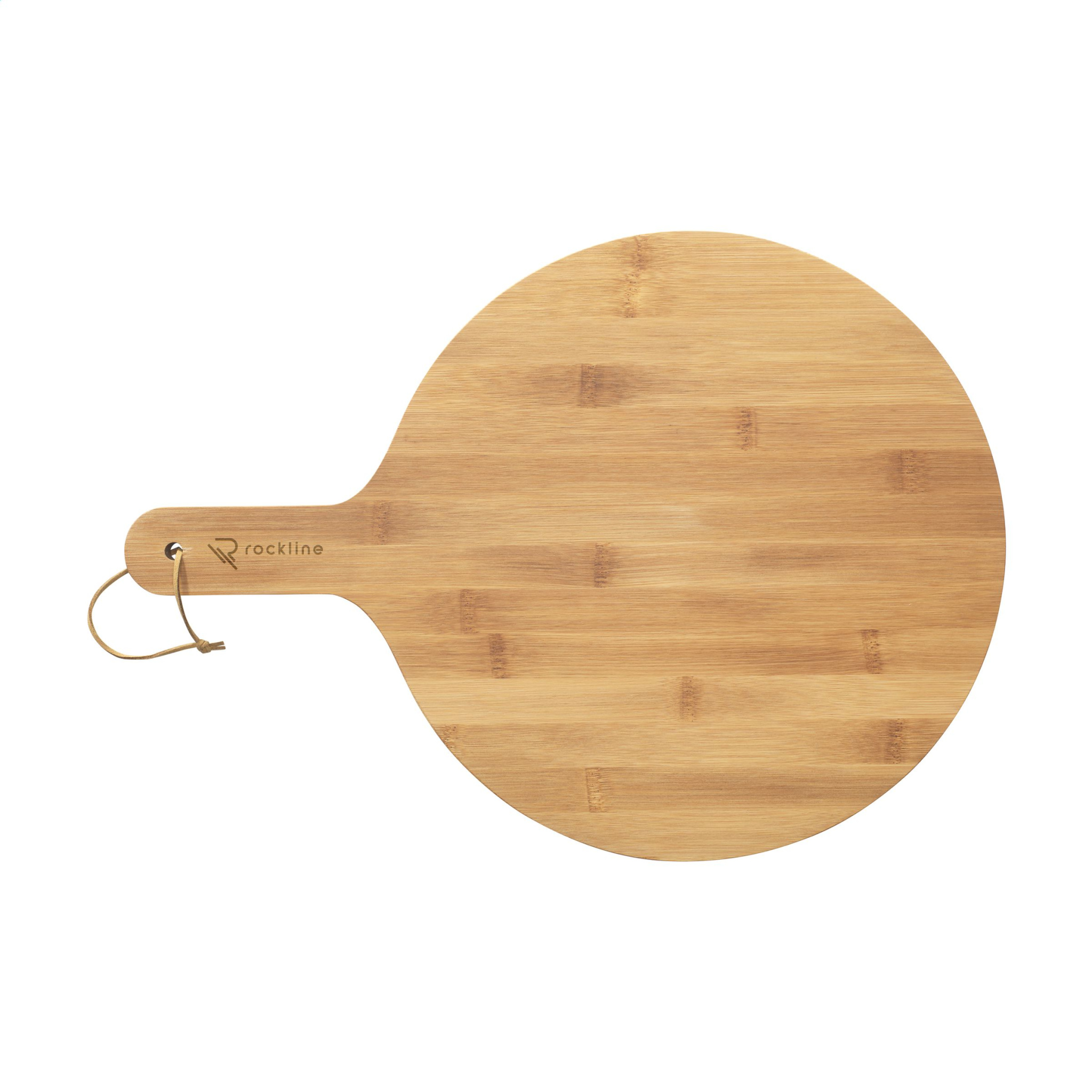 Pyöreä tarjoilulauta nahkanauhalla. Valmistettu vahvasta, kiillotetusta, FSC 100 % sertifioidusta bambusta. Hygieeninen, antibakteerinen ja helppo puhdistaa. Tässä laudassa on suuri tarjoilualue, jonka halkaisija on vähintään 31,5 cm. Reilu koko pizzan tai tapaksen tarjoiluun juhlien ja juomien kanssa. Sopii myös sekä juustolaudaksi että leikkuulaudaksi. HUOMAA: Bambun luonnollisten rakeiden ja ääriviivojen vuoksi emme voi taata kaiverruksen syvyyden/värin yhtenäisyyttä. Jokainen tuote toimitetaan erillisessä ruskeassa pahvilaatikossa.
