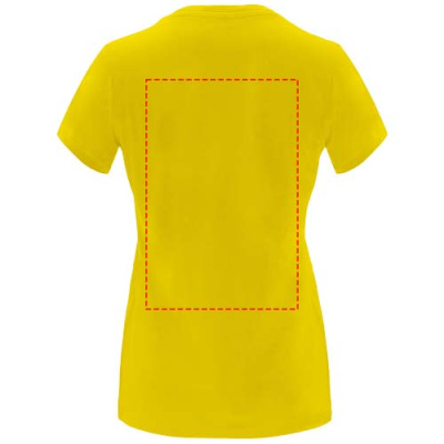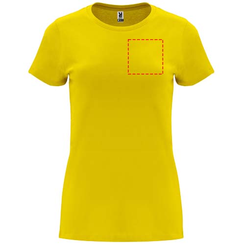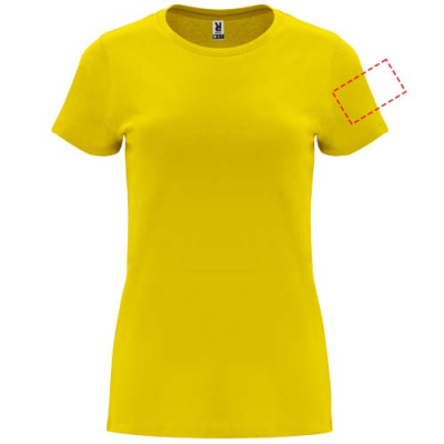 Lyhythihainen ja muotoiltu naisten t-paita. 1x1 resorikankainen pyöreä kaula-aukko. Vahvistettu sauma pääntiessä. Irrotettava tuotemerkki.