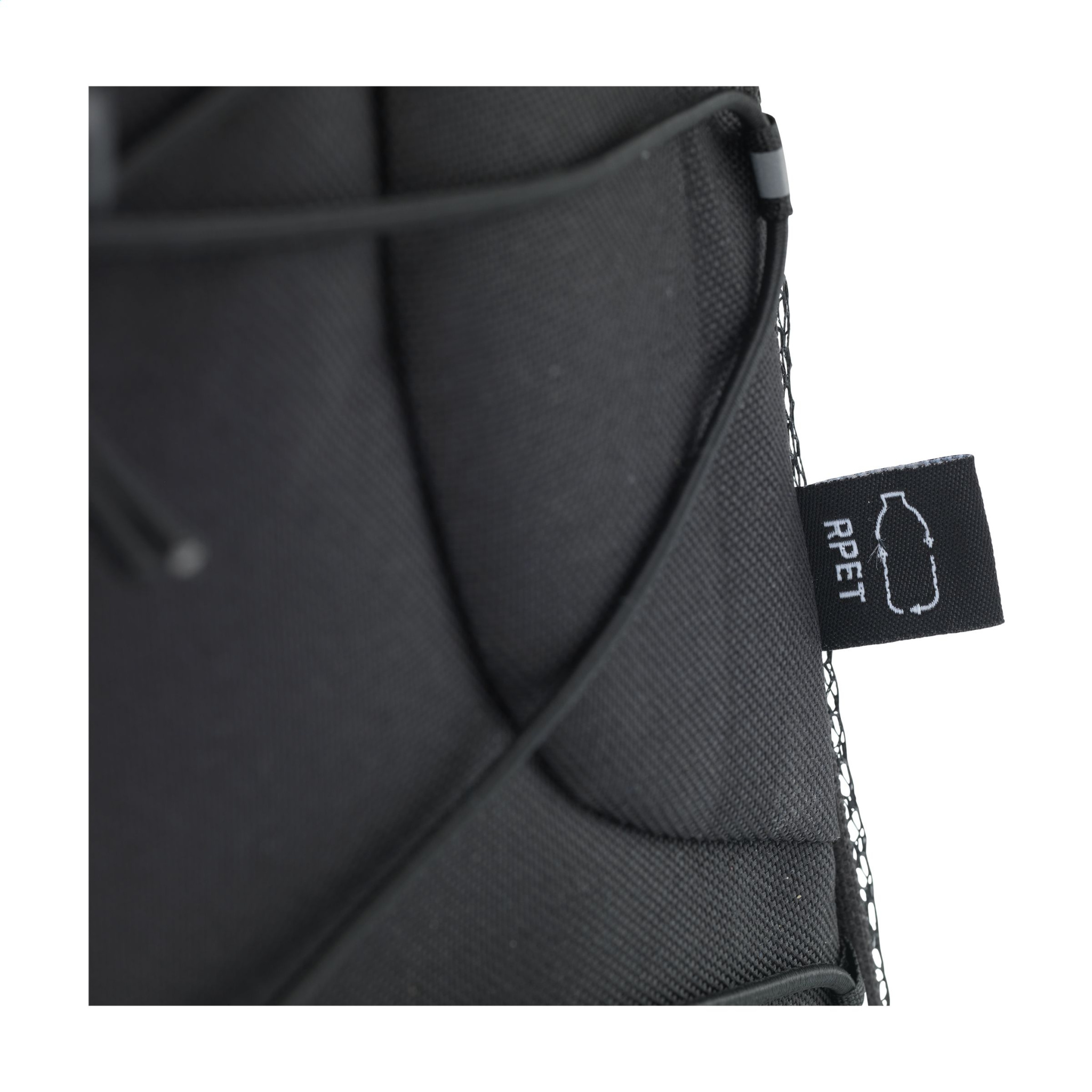 Vau! Reppu tukevasta 600D RPET:stä ja 2 vetoketjullista taskua. Tilavassa päälokerossa on vaahtomuovisuojataskut, joista yhteen mahtuu kannettava tietokone, jonka näyttökoko on jopa 15,6 tuumaa. Toinen lokero on ihanteellinen pienempien tarvikkeiden, asiakirjojen tai muistikirjan säilyttämiseen. Repun kyljestä löytyy verkkotasku juomapullolle ja laukun etuosassa on kätevä kuminauha, johon voi säilyttää takin, puseron tai vastaavan vaatekappaleen. Kantolenkki, säädettävät olkaimet ja repun takaosassa on pehmustettu vaahtomuovi lisää mukavuutta. Täysin vuorattu reppu on viimeistelty edestä fluoresoivilla korosteilla, mikä on loistava turvaominaisuus matkoilla pimeässä. GRS-sertifioitu. Kierrätysmateriaali yhteensä: 97 %. Kapasiteetti n. 20 litraa.