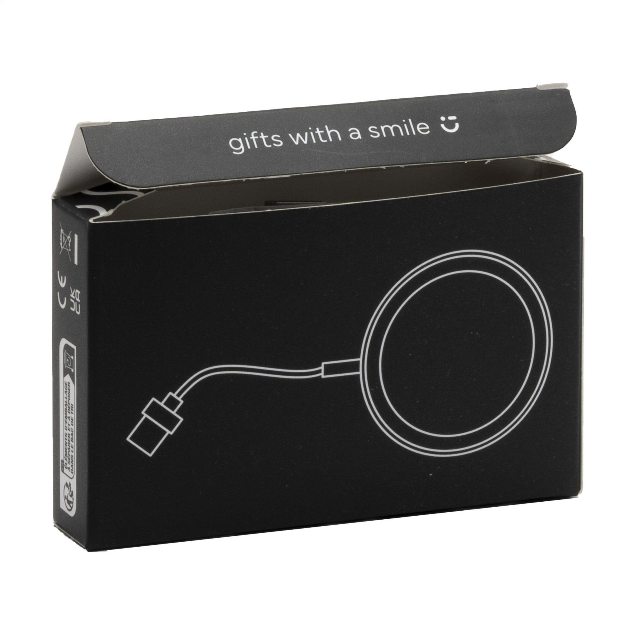 Magneettinen 10 W laturi, jonka kotelo on valmistettu kierrätetystä ABS:stä. Voit ladata älypuhelimesi langattomasti tällä laturilla ja magnetoidun alustan ansiosta puhelimesi voi pysyä yhteydessä siihen vaikka käytät puhelinta. Tämä laturi on ihanteellinen, jos haluat ladata mobiililaitteesi samalla kun soitat puhelua tai katsot videota. Tämän laturin integroidut magneetit (11 korkealaatuista lämmönkestävää N52H:ta) on kohdistettu täydellisesti ja varmistavat aina, että puhelimesi on oikeassa asennossa optimaalista latausta varten. Mukana on myös ylimääräinen magneettinen metallirengas, joka tukee ei-magneettisten langattomien ladattavien älypuhelimien lataamista. Tämä tuote on yhteensopiva iPhone 12:n ja uudempien kanssa. Lähtö: DC 9V/1.1A (15W) nopeaa latausta varten. Mukana kaapeli (USB-A & Type-C) ja käyttöohje. Sekä tuote että sen lisävarusteet ovat PVC-vapaita. Jokainen tuote toimitetaan erillisessä ruskeassa pahvilaatikossa.