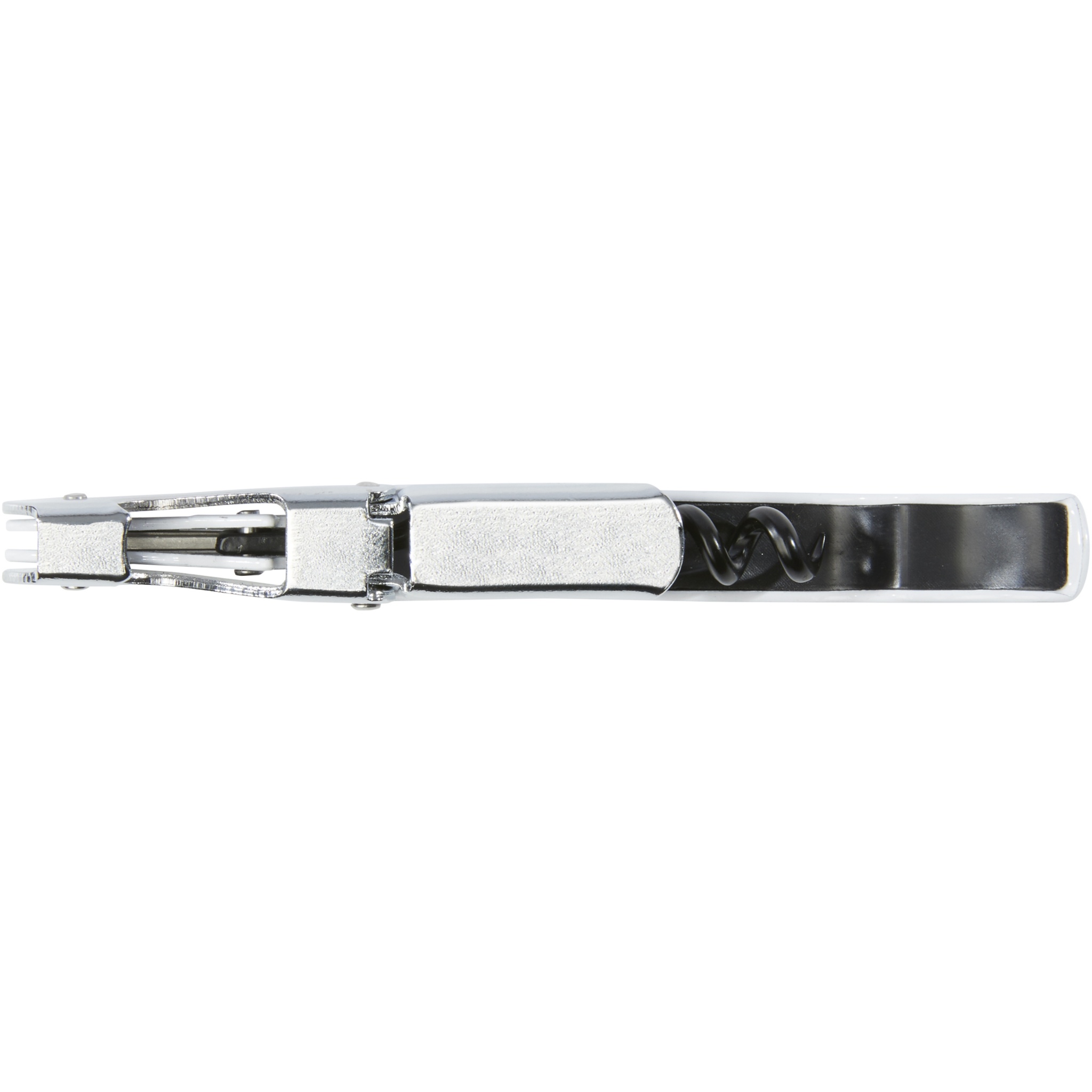 Ruostumattomasta teräksestä valmistettu tarjoilijan veitsi, joka on varustettu korkkiruuvilla, folioleikkurilla ja pullonavaajalla. Kaksiosaisen rakenteen ansiosta korkki on helppo vetää pullosta.