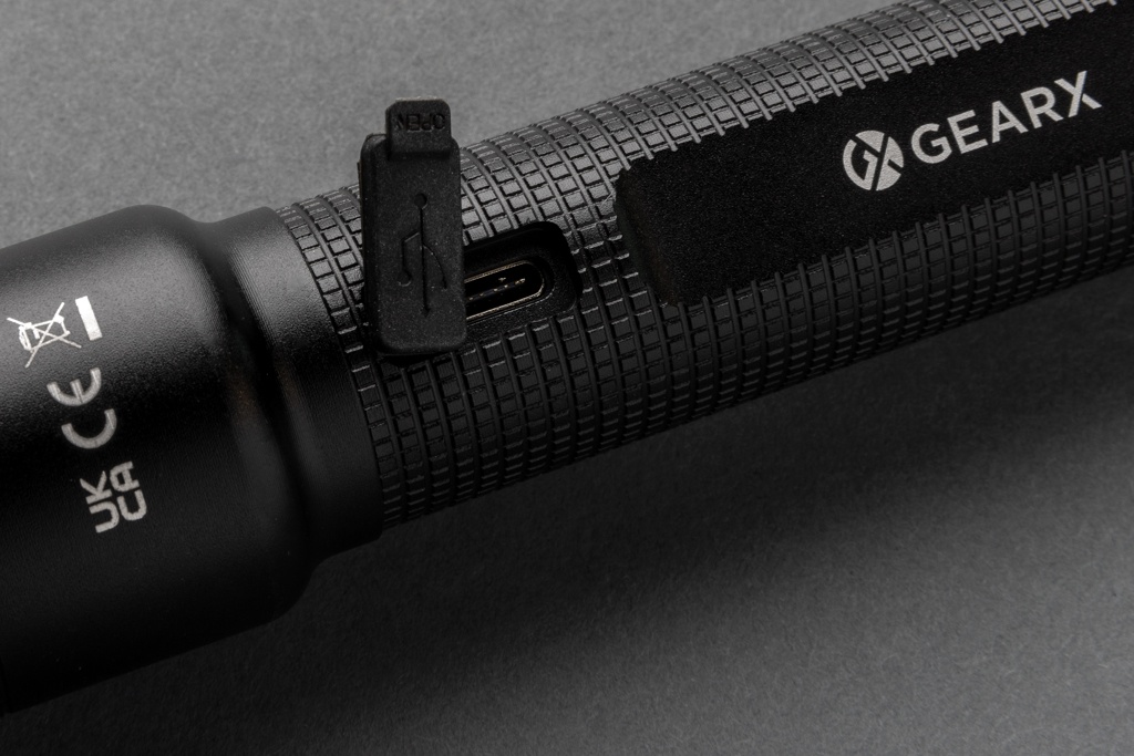Gear X iso USB-uudelleenladattava taskulamppu, musta