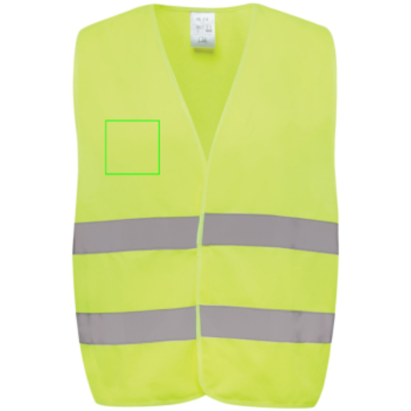 Unisex luokan 2 korkean näkyvyyden varoitusliivi, joka on suunniteltu 164-198 cm pituisille henkilöille. Tässä liivissä on runsaasti tilaa suurille merkkauksille sekä edessä että takana, joten ne sopivat erinomaisesti ammattikäyttöön, kun näkyvyys on ensiarvoisen tärkeää. Liivissä on fluoresoiva tausta yhdistettynä heijastinnauhaan, mikä takaa EN ISO 20471:2013+A1:2016 -standardin noudattamisen. Lisäksi vaatteet on merkitty CE-symbolilla, joka vahvistaa niiden noudattavan EU-asetusta 2016/425/EU ja luokittelee ne II-kategorian henkilösuojaimiksi. Valmistettu GRS-sertifioidusta kierrätetystä PET:stä. Kierrätetyn materiaalin kokonaismäärä: 67% tuotteen kokonaispainosta. GRS-sertifiointi takaa täysin sertifioidun kierrätysmateriaalien toimitusketjun.
