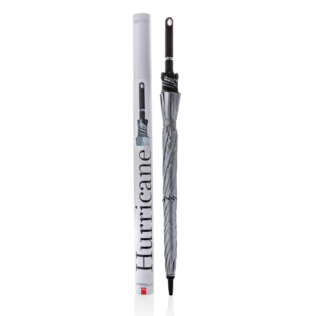 Hurricane-sateenvarjossa on 27” kaksinkertainen kangaspaneeli, joka sopii ihanteellisesti vaikeisiin sääolosuhteisiin ja kuivuu sen jälkeen silmänräpäyksessä vesitiiviin kankaan ansiosta. Ainutlaatuinen avausmekanismi helpottaa sateenvarjon avaamista ja sulkemista. Rekisteröity design®