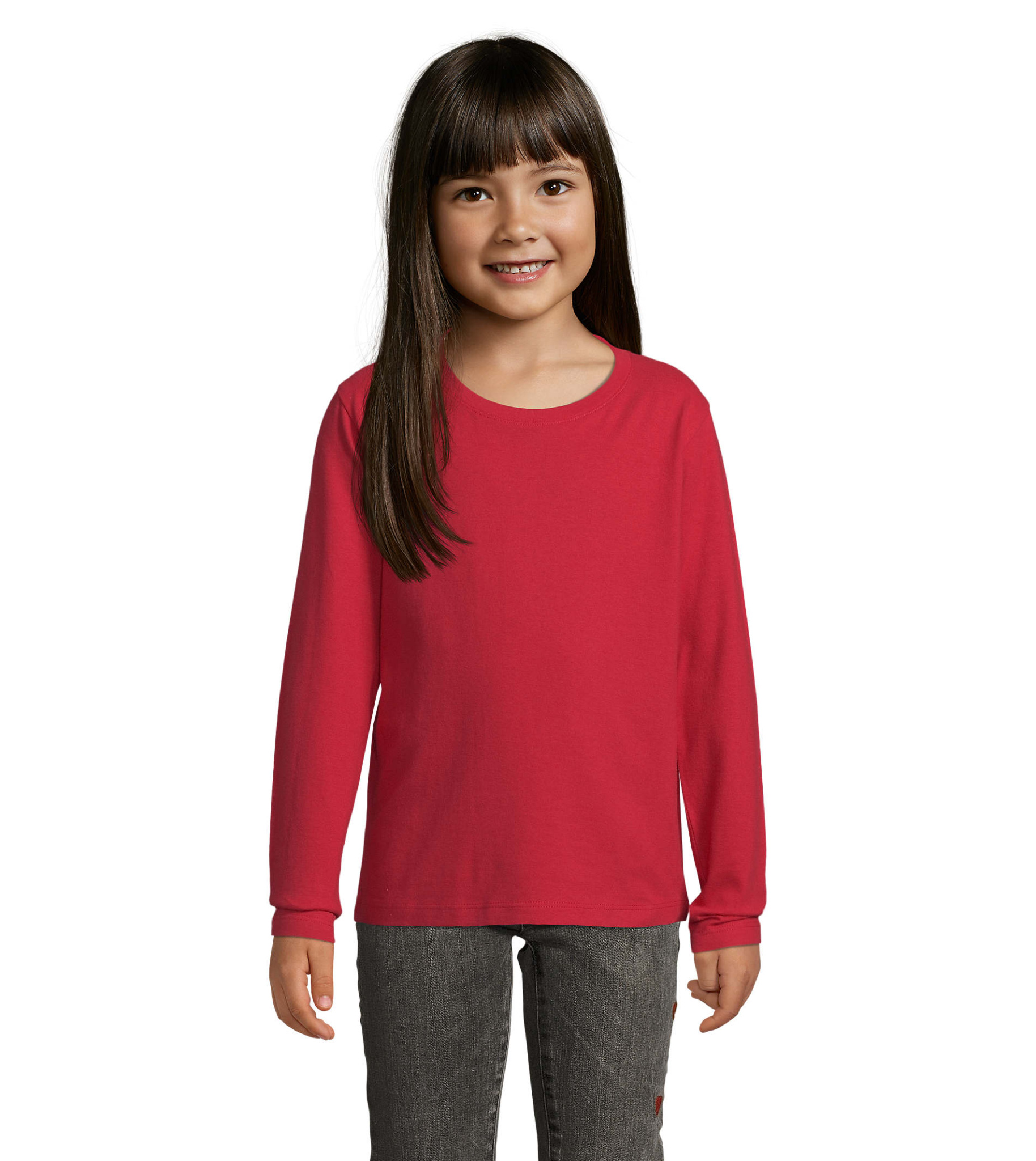 SOL'S IMPERIAL lasten t-paita 190g. Teipattu kaula-aukko. Elastaanista valmistettu ribbikaulus. Pyöreä kaula-aukko. Pitkät hihat. Leikattu ja ommeltu. Kankaan yksityiskohdat: 100 % puolikammattu rengaskehrätty puuvilla. OEKO-TEX®. Myydään vain painatuksen kanssa.