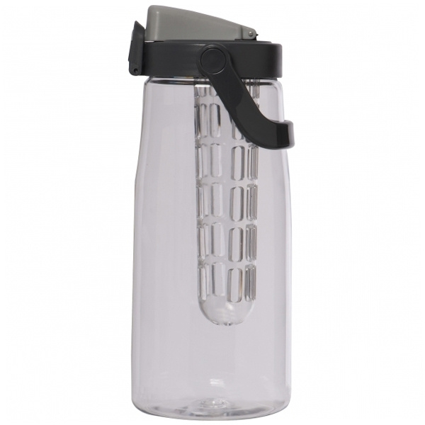 Iso muovista valmistettu juoma-annostelija, jossa lukittava nokka, kantokahva, siivilä mm. hedelmiä ja tilavuus 2500 ml. Painamme logosi pullon alaosaan.