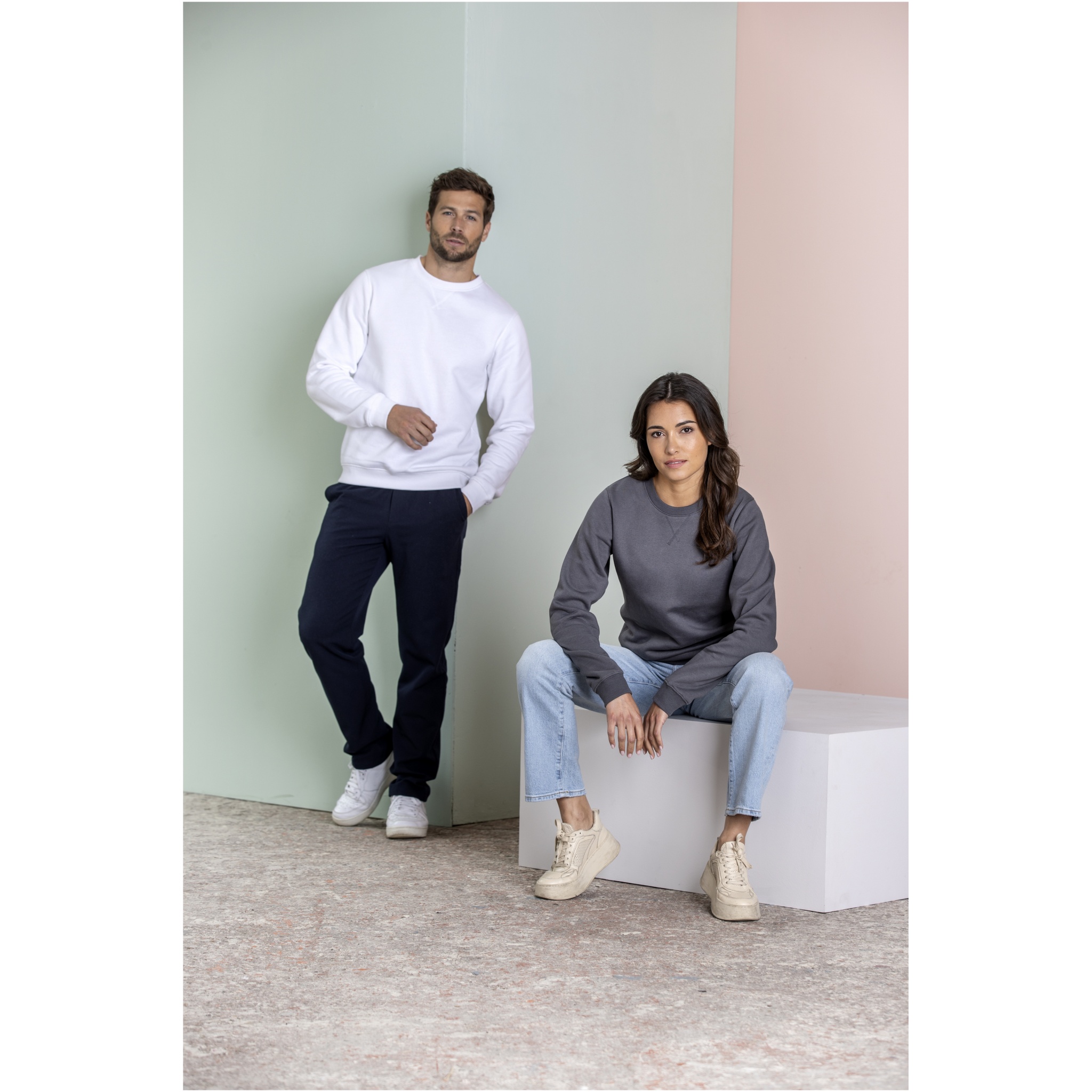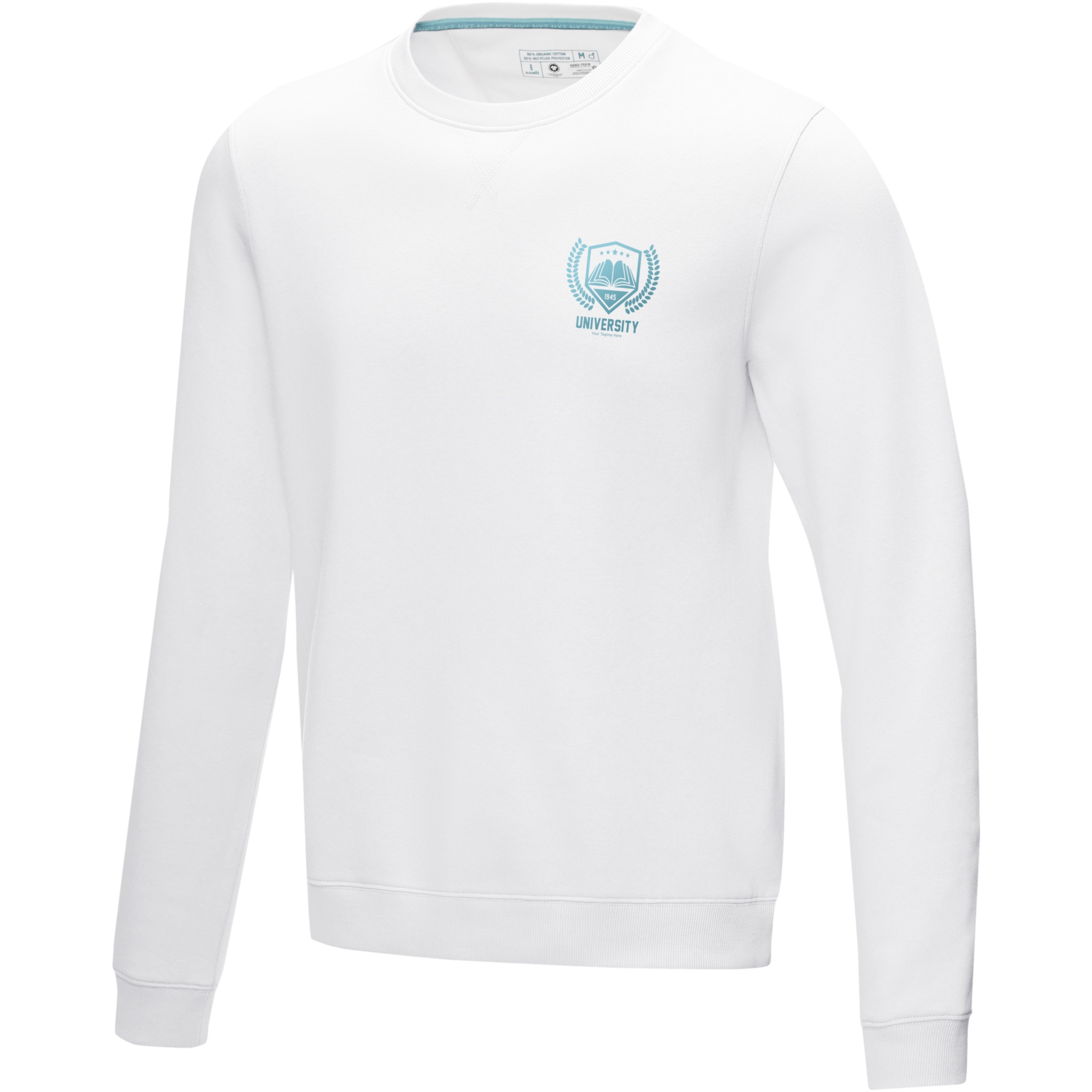 The Jasper men's organic recycled crewneck sweater – a fusion of style and sustainability. This sweater blends eco-conscious fashion with comfort, featuring a flat knit rib v-insert at centre front. With a soft brushed interior, it ensures a cozy feel. Made from a 280 g/m² blend of organic cotton and recycled polyester.