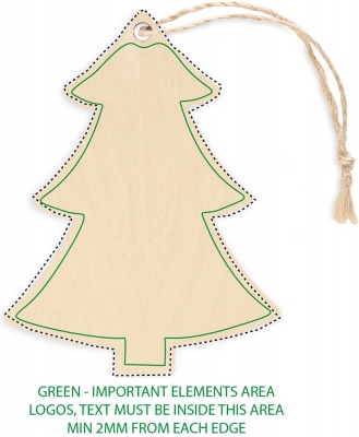 Vanerista valmistettu joulukoriste juuttiköydellä. Sublimaatiopainatus ei tue valkoisen värin painatusta.
