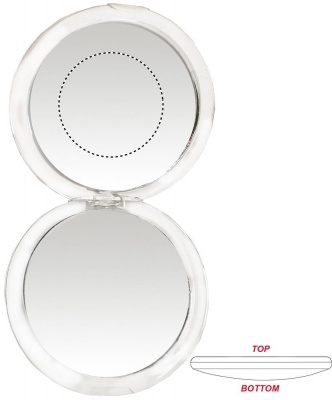 Kompakti kaksipuoleinen taskupeili, tuotteen väri läpikuultava.