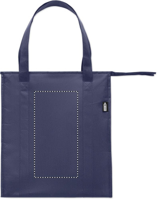 Kylmälaukku RPET-kuitukankaasta 80g/m². Eristysmateriaali: alumiinifolio. Tilavuus 25L. Päätasku, jossa vetoketju päällä.