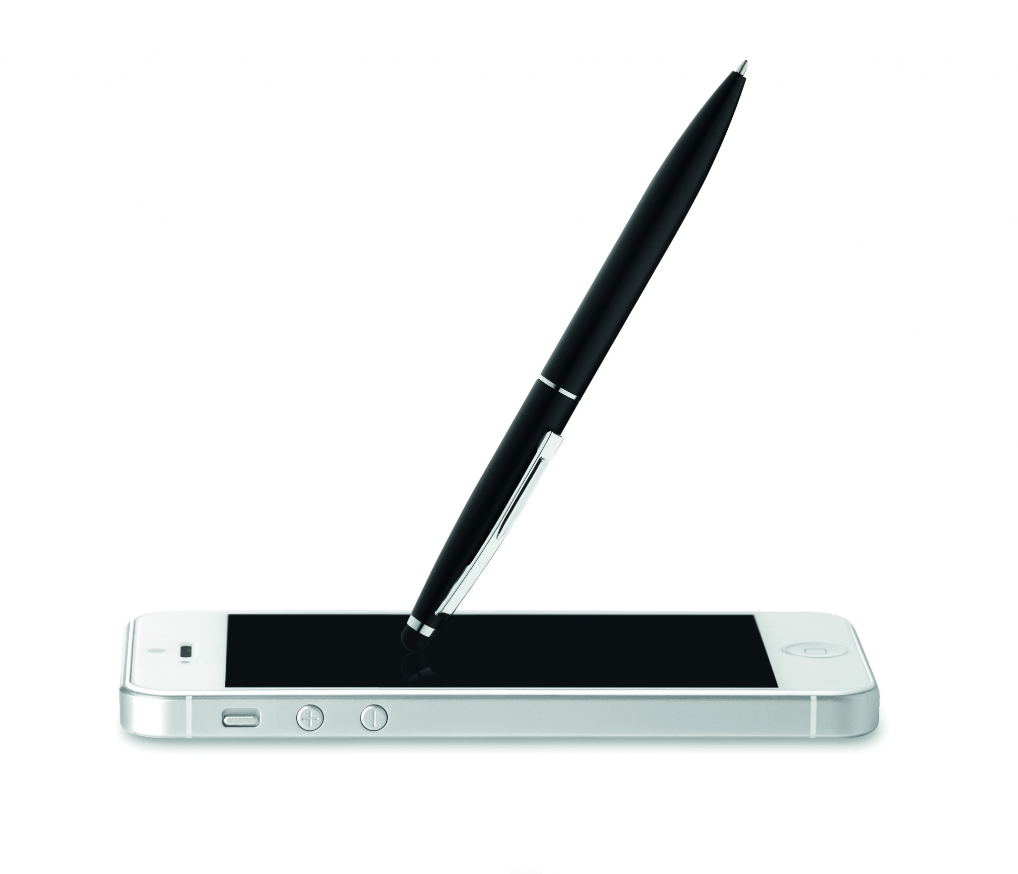 Alumiininen twist action kuulakärkikynä sinisellä musteella ja kosketusnäyttöpäällä.