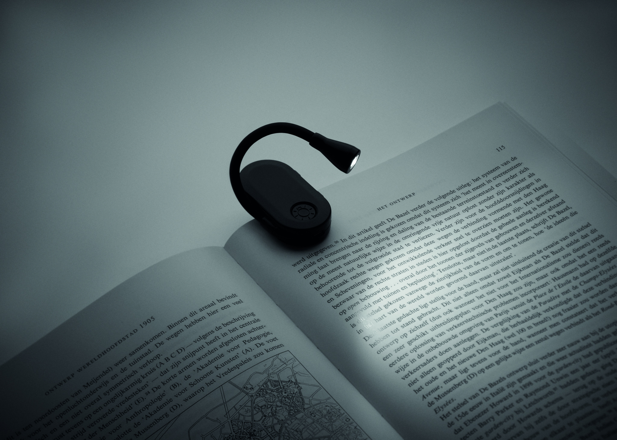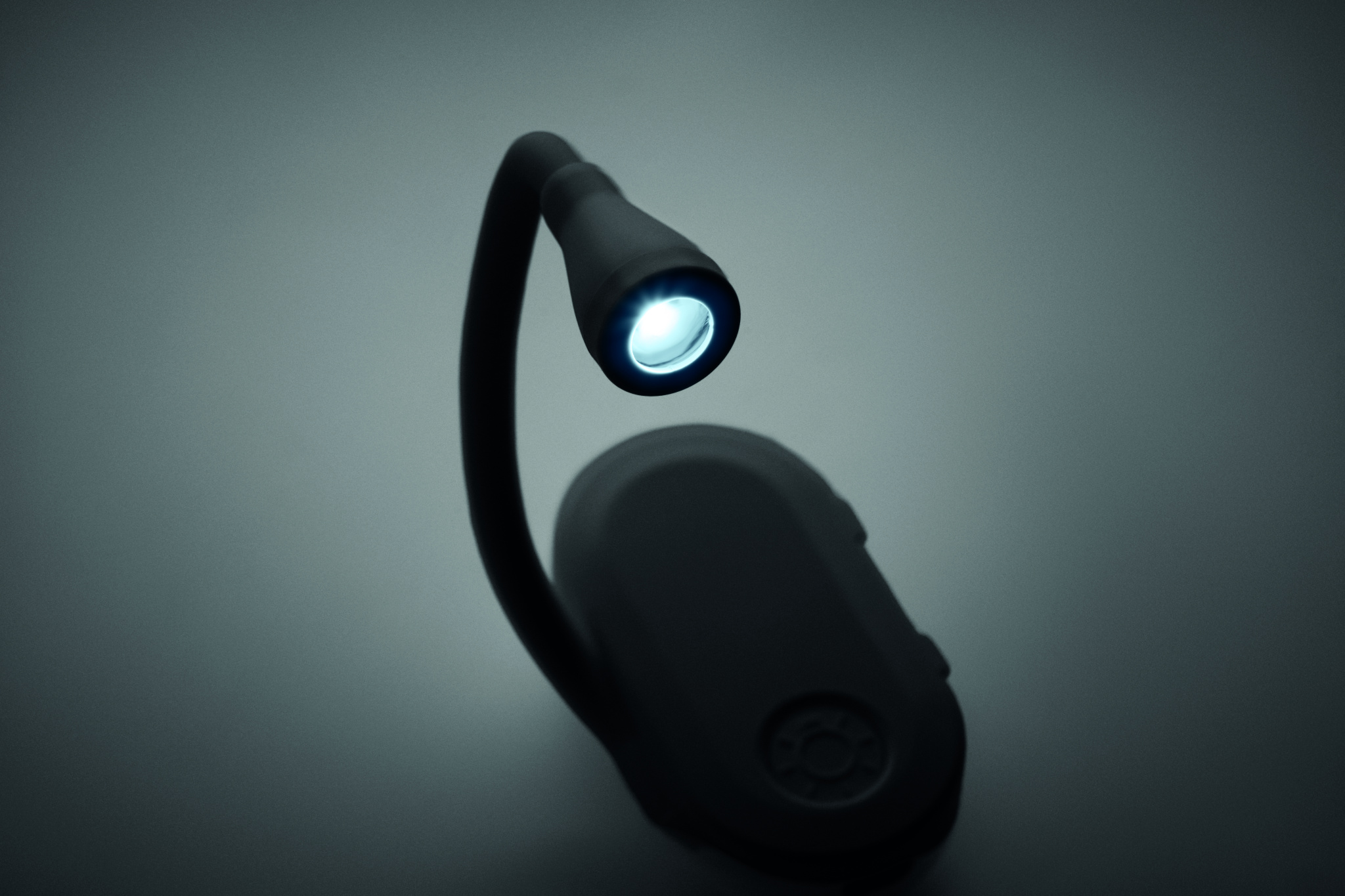 Ladattava LED-kirjavalo ABS-muovista, joustavalla rungolla ja klipsillä. Kolme valoasetusta, 300 mAh akku.