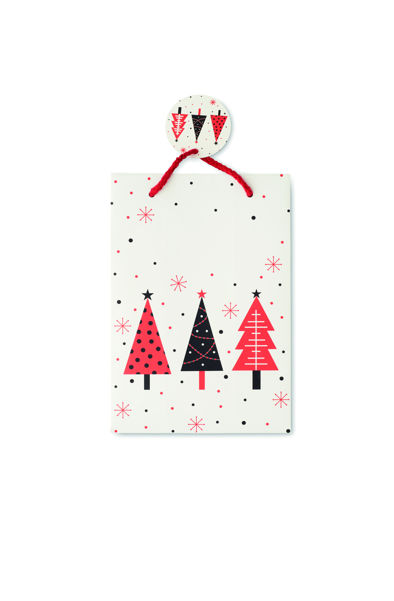 Pieni jouluinen lahjapaperikassi (30 % kierrätettyä) nimilapulla. 128 g/m². FSC®-certified | FSC MIX, W5.3, FSC-C213206
