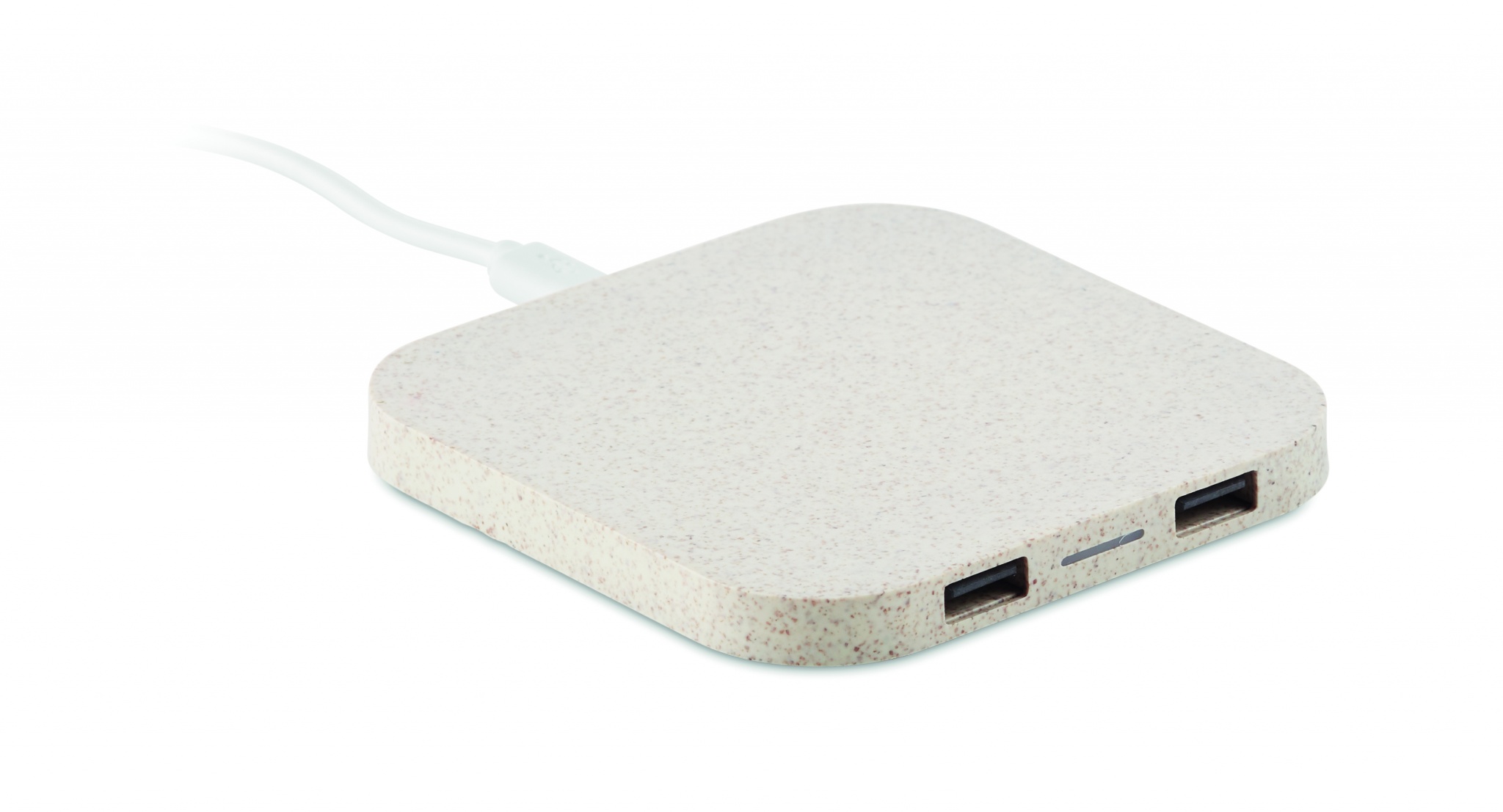 Langaton laturi, valmistettu 35% vehnän oljesta ja 65% ABS. Sisältää kaksi USB 2.0 -keskitintä, lähtövirta DC5V/1A (5W) Yhteensopiva android, iphone8, X ja uusimpien laitteiden kanssa.