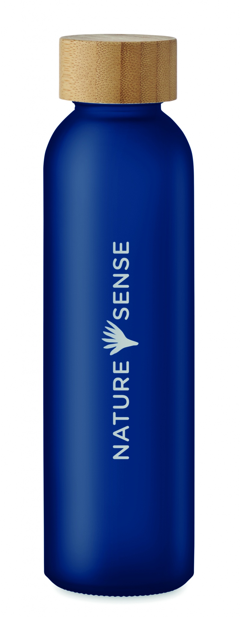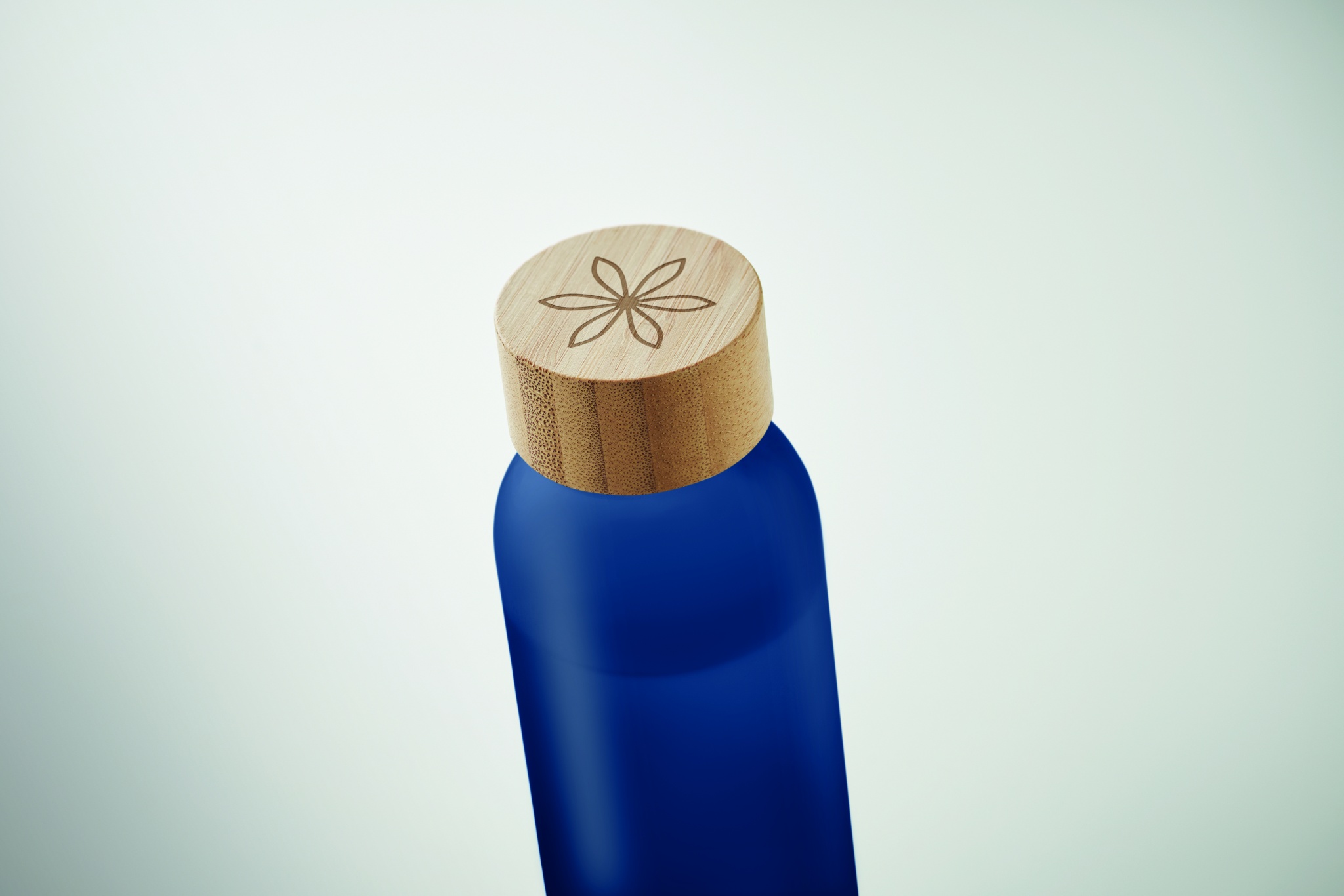Lasipullo, jossa on himmeä pinta ja bambukansi. Vuotamaton. Tilavuus: 500 ml.