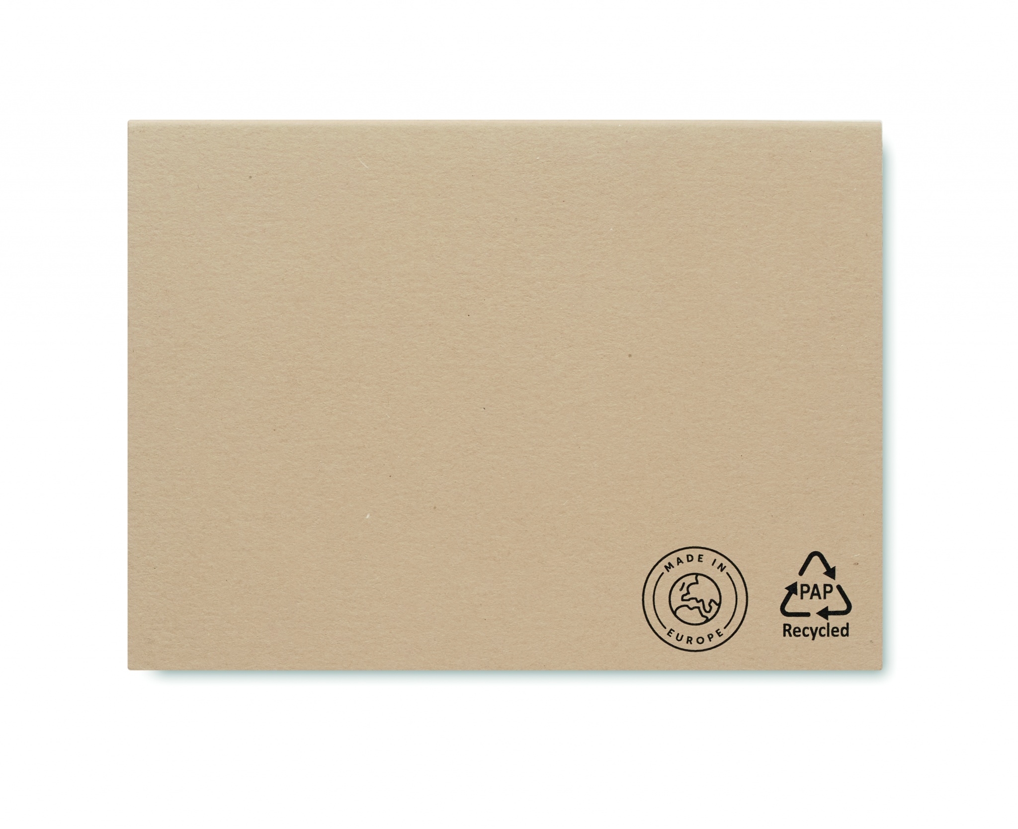 2-osainen muistilappuvihko, jossa on kierrätyspaperikansi (50 arkkia). Muistilaput (25 arkkia) ja 3 eriväristä sivumerkkiä. Valmistettu EU:ssa.