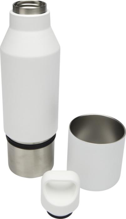 RCS-sertifioitu ruostumattomasta teräksestä valmistettu kaksiseinämäinen kuparieristetty pullo irrotettavalla kupilla. Tämä monikäyttöinen pullo on mahtuu repun sivutaskuun, ja siinä on kätevä korkkiin sulautettu kantokahva. Kestävä tehopinnoite ulkopuolella. Pitää juomat kuumana 12 tuntia tai kylmänä 24 tuntia. Toimitetaan kierrätetystä kartongista valmistetussa lahjapakkauksessa. Pullon vetoisuus: 600 ml. Kupin vetoisuus: 300 ml.