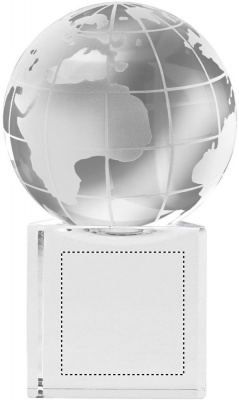 Kristalli paperipaino, maapallo designilla. Klassisessa lahjapakkauksessa.