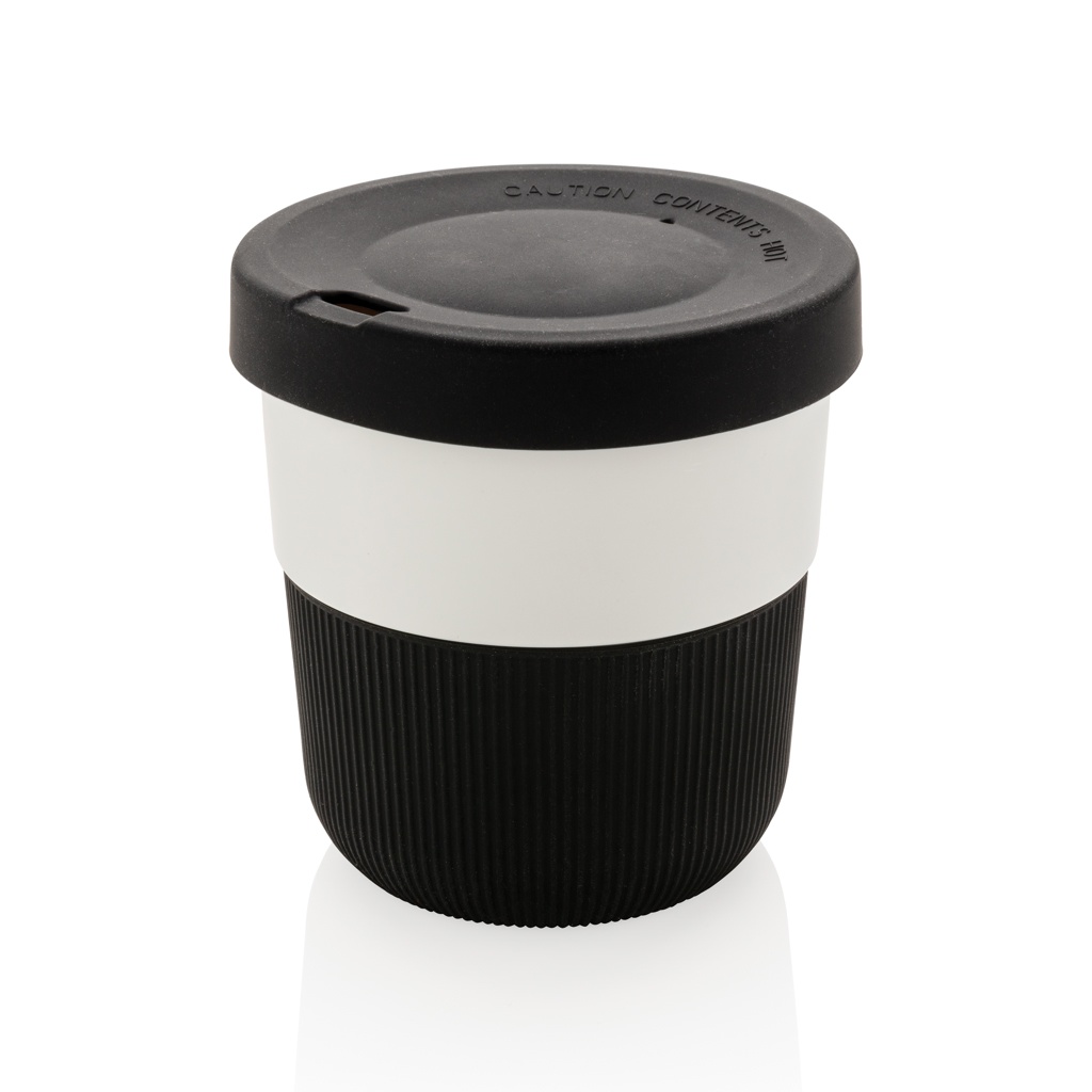 Ympäristöä säästävä vaihtoehto perinteisille mukeille! Tyyliä ja käytännöllisyyttä aamuisille työmatkoillesi – tässä PLA-kahvimukissa kannat kuuman juoman helposti mukanasi. Valmistettu kasvimateriaalista (PLA), joten tyylikkyyden lisäksi muki on ystävällinen planeetallemme. Kätevä ja mukava silikonikahva ja kansi. Sopii käytettäväksi useimmissa kahviautomaateissa. 100-prosenttisesti melamiiniton. Tilavuus 280ml.