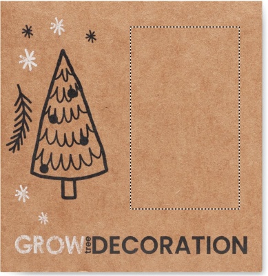 Puinen pallon muotoinen koriste, jossa on juuttinarua ja kuusen siemeniä. Toimitetaan ruskeassa paperikuoressa.