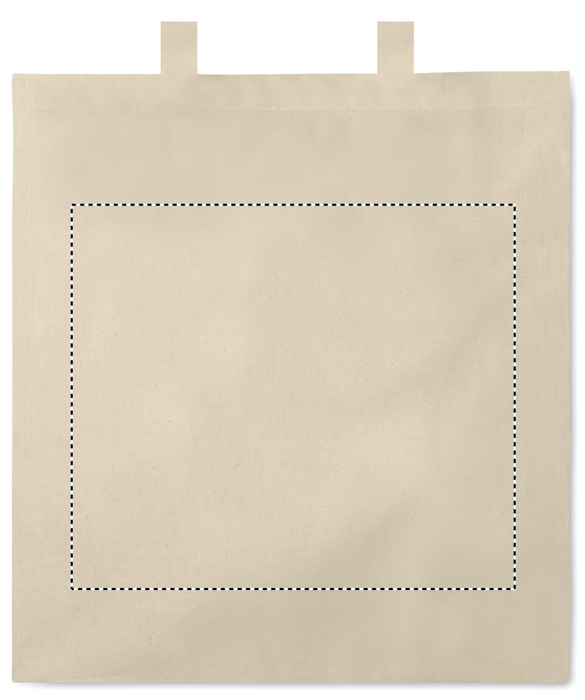 140 g / m² puuvilla kassi, pitkillä kahvoilla ja pohja levikkeellä.
