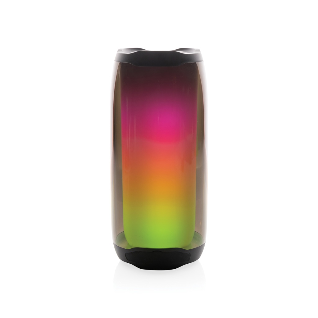 Tehokas 10W langaton kaiutin 360 asteen RGB LED valoilla. Lightboom loistaa kirkkaasti läpi yön. Selkeä ääni kantautuu joka suuntaan kiitos kaiuttimen ainutlaatuisen muotoilun. Kuori valmistettu 100% RCS-standardin mukaisesta kierrätetystä ABS/PS-muovista. Kierrätetyn materiaalin kokonaismäärä: 39% perustuen tuotteen painoon. 1800 mAh litiumakku, joka takaa jopa 6 tunnin toistoajan. Akun lataus onnistuu 4 tunnissa. Sisäänrakennettu mikrofoni puheluiden vastaamiseen. Sisäänrakennettu TF-lukko, AUX-portti ja USB-portti. BT 5.0 taaten sujuvan toiminnan jopa 10 metrin etäisyydelle. Sisältää PVC-vapaan kierrätetystä TPE-materiaalista valmistetun latauskaapelin. Tuote ja lisätarvikkeet 100% PVC-vapaita. Pakattu FSC-sekoituksesta valmistettuun pakkaukseen.
