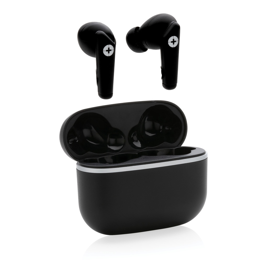 True wireless -kuulokkeiden uusi sukupolvi. Kuulokkeet ja latauskotelo valmistettu RCS (Recycled Claim Standard) sertifioidusta kierrätetystä ABS:stä. Kierrätetyn materiaalin kokonaismäärä: 59% perustuen tuotteen painoon. RCS sertifiointi varmistaa kierrätettyjen materiaalien täysin sertifioidun toimitusketjun. Kuulokkeet toimitetaan kompaktissa 400 mAh:n latauskotelossa, jonka avulla voit ladata kuulokkeita missä vain. Kuulokkeissa on BT 5.3 automaattisella yhdistämisellä sulavan yhteyden takaamiseksi. Kuulokkeissa on 40mAh:n akku, jonka ansiosta toistoaika on jopa 4 tuntia, ja joka voidaan ladata uudelleen 1.5 tunnissa latauskotelossa. Langaton toimintaetäisyys jopa 10 metriä. Sisältää tyypin C latauskaapelin, joka on valmistettu GRS-sertifioidusta kierrätetystä TPE:stä. Pakattu FSC® sekoituksesta valmistettuun lahjapakkaukseen. Tuote ja lisätarvikkeet 100% PVC-vapaita.
