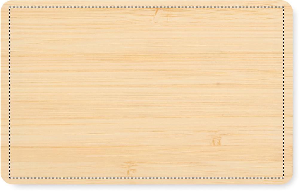 RFID varkaudenesto kortti bambu kotelossa. Käyttämällä sähkömagneettista kenttää se suojaa kaikki 13,56 MHz kortit (juna, linja-auto, pankki- tai luottokortit) elektronisilta varkaudelta 2-3 cm kortin ympäri. (1,3 mm). Luonnollisen materiaalin (bambu) vuoksi, tuotteiden värissä/ koossa saattaa olla erinäisyyksiä ja tämä voi vaikuttaa painatuksen lopputulokseen.