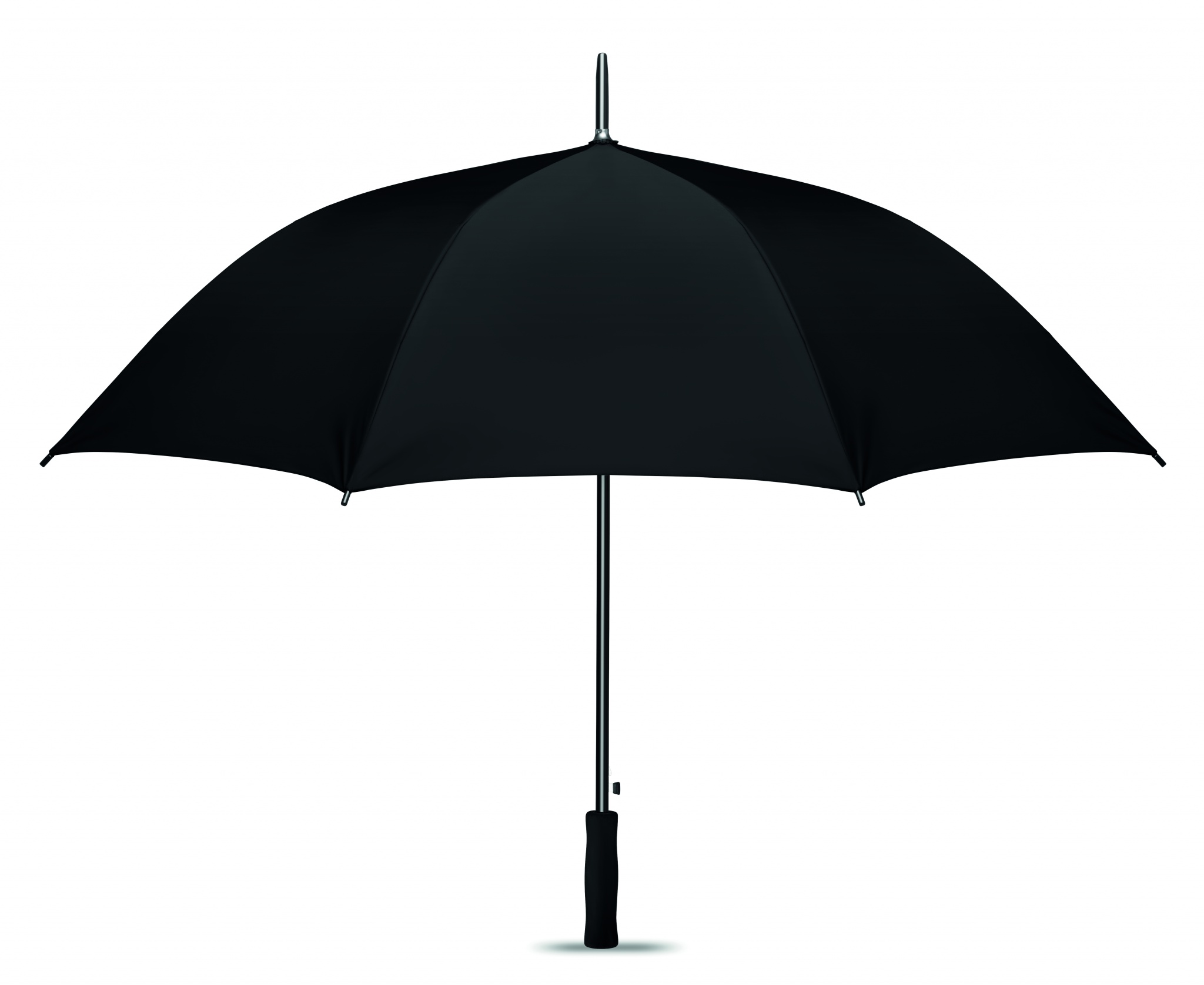 190T polyesterinen 27 tuuman automaattinen sateenvarjo, kromattu teräsakseli. Mustalla päällystetty metallivarsi ja ruoteet, muovikärki. Suora musta EVA-kahva, sisältää samanvärisen suojapussin.