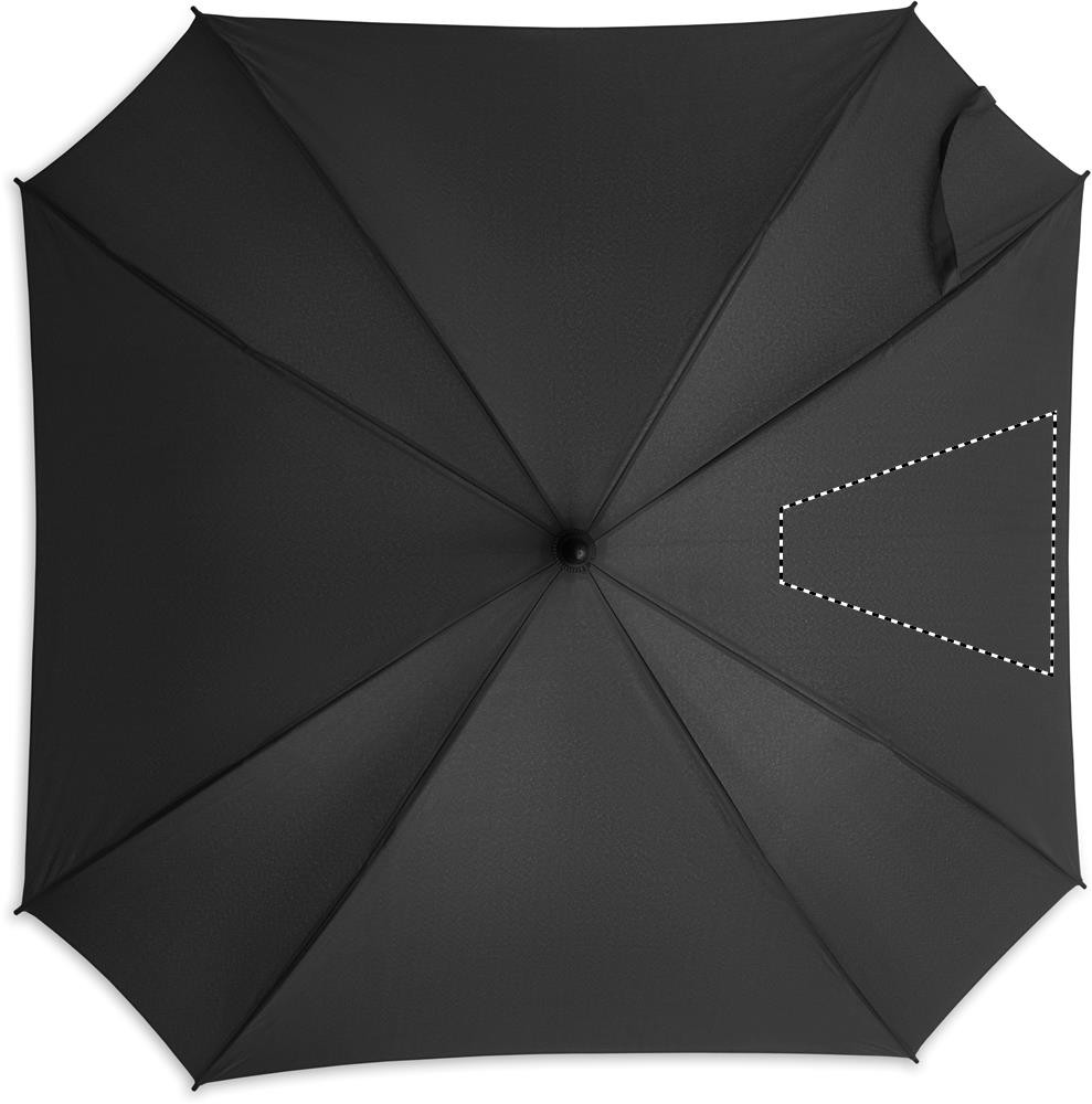 27 tuuman neliön muotoinen, automaattisesti avautuva/sulkeutuva tuulenkestävä sateenvarjo 190T pongee-materiaalista. Kahva ABS-kumipintainen. Kahva ja ruoteet lasikuitua.