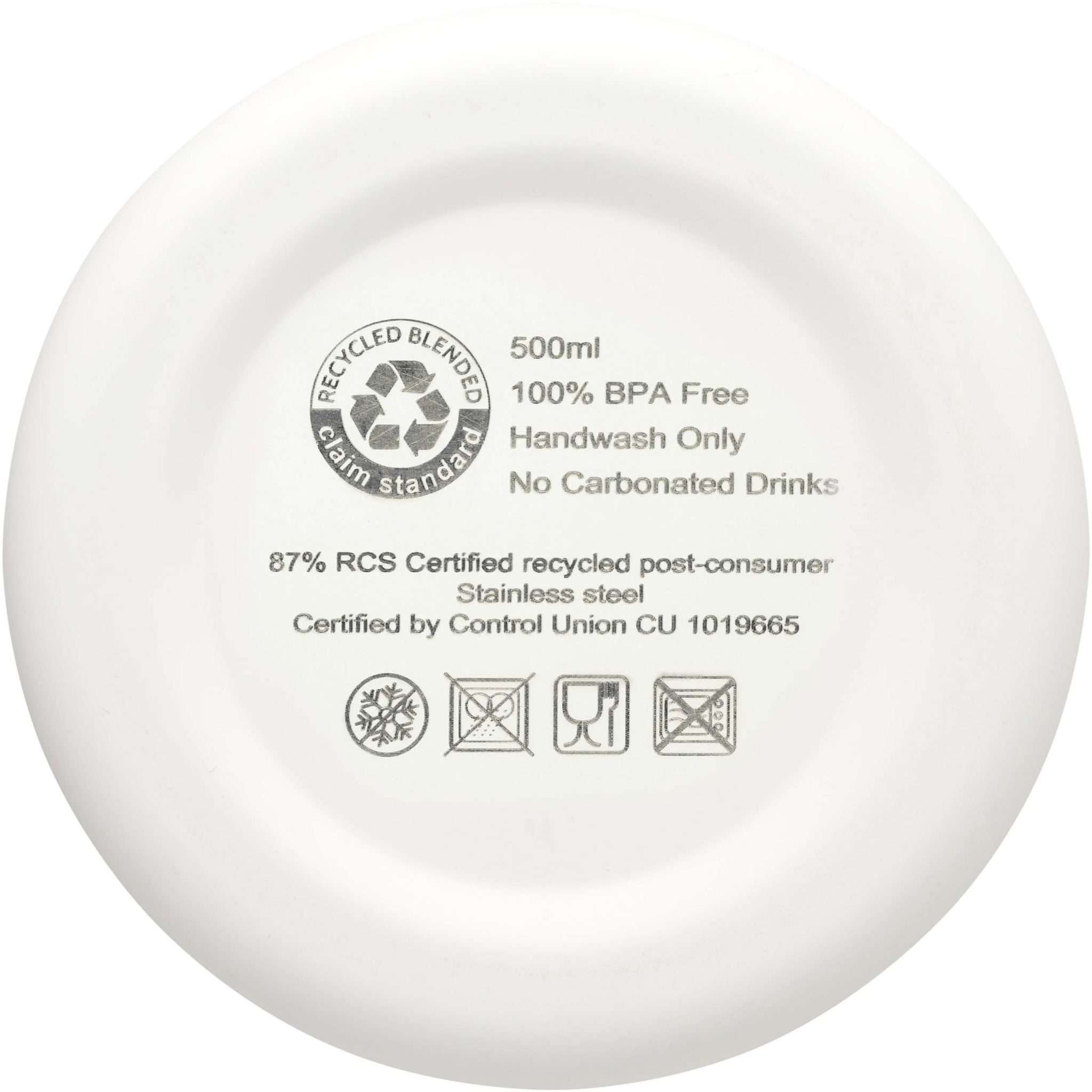 Spring 500 ml:n RCS-sertifioitu kierrätetty teräs kuparivakuumieristetty pullo, Valkoinen