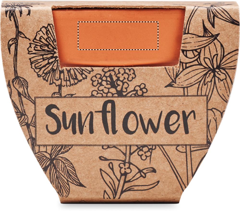 Pieni saviterrakotta ruukku, sisältää auringonkukan siemeniä. Sisältää turvenapin.