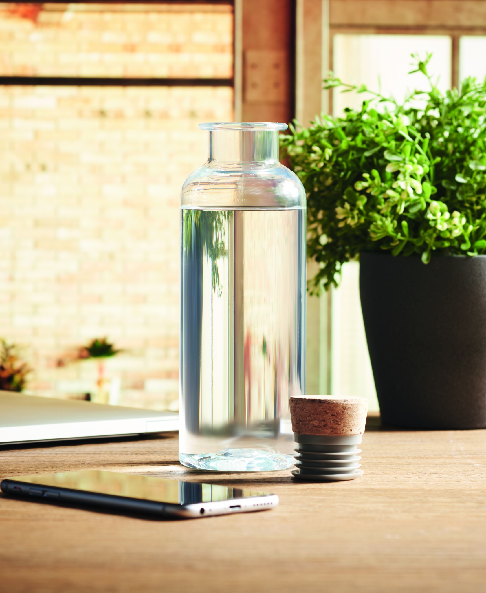 Juomapullo Tritan Renew™ -materiaalista, pullossa korkkikorkki. Tilavuus: 500 ml.