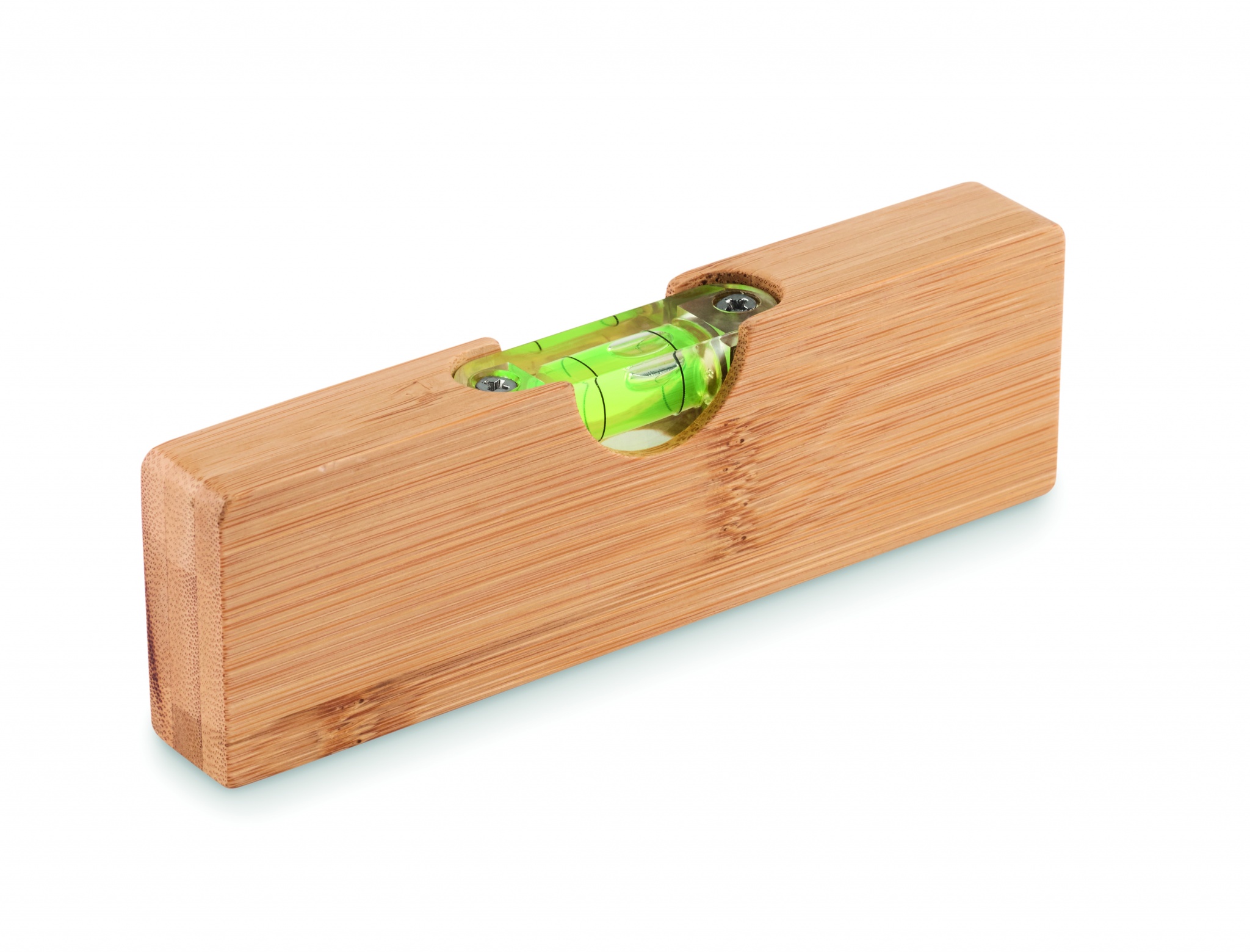 Bambusta valmistettu vatupassi ja pullonavaaja. Luonnollisen materiaalin (bambu) vuoksi, tuotteiden värissä/ koossa saattaa olla erinäisyyksiä ja tämä voi vaikuttaa painatuksen lopputulokseen.