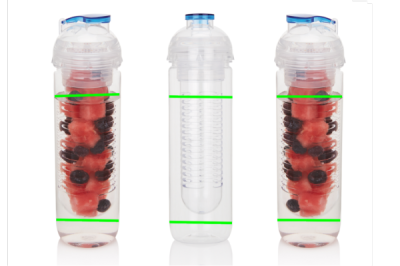 500 ml Tritan-pullo hedelmien syöttölokerolla. Vitamiiniannos ja lisämakua veteesi tuoreiden hedelmien avulla. Kylmennä vettä lisäämällä jääpaloja.