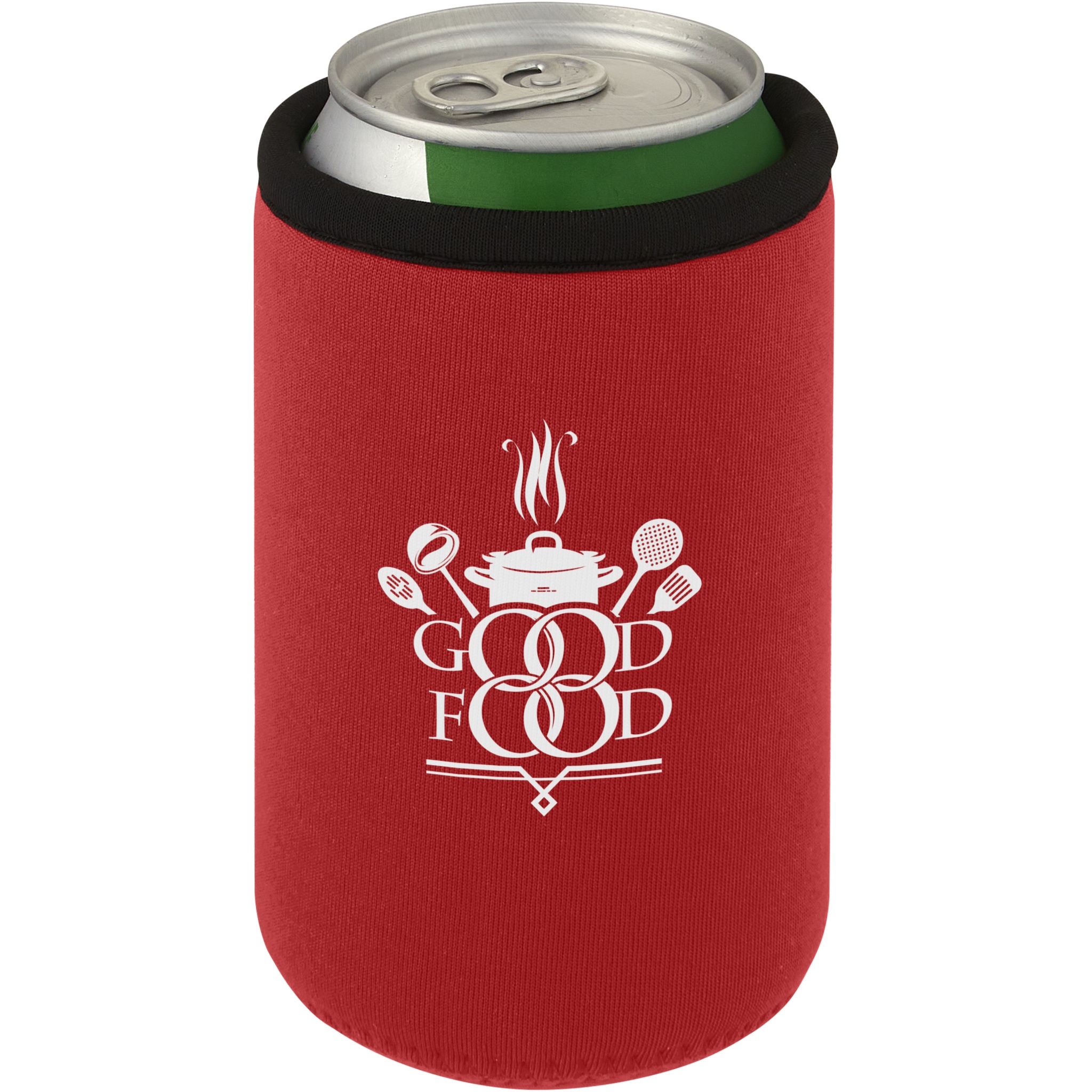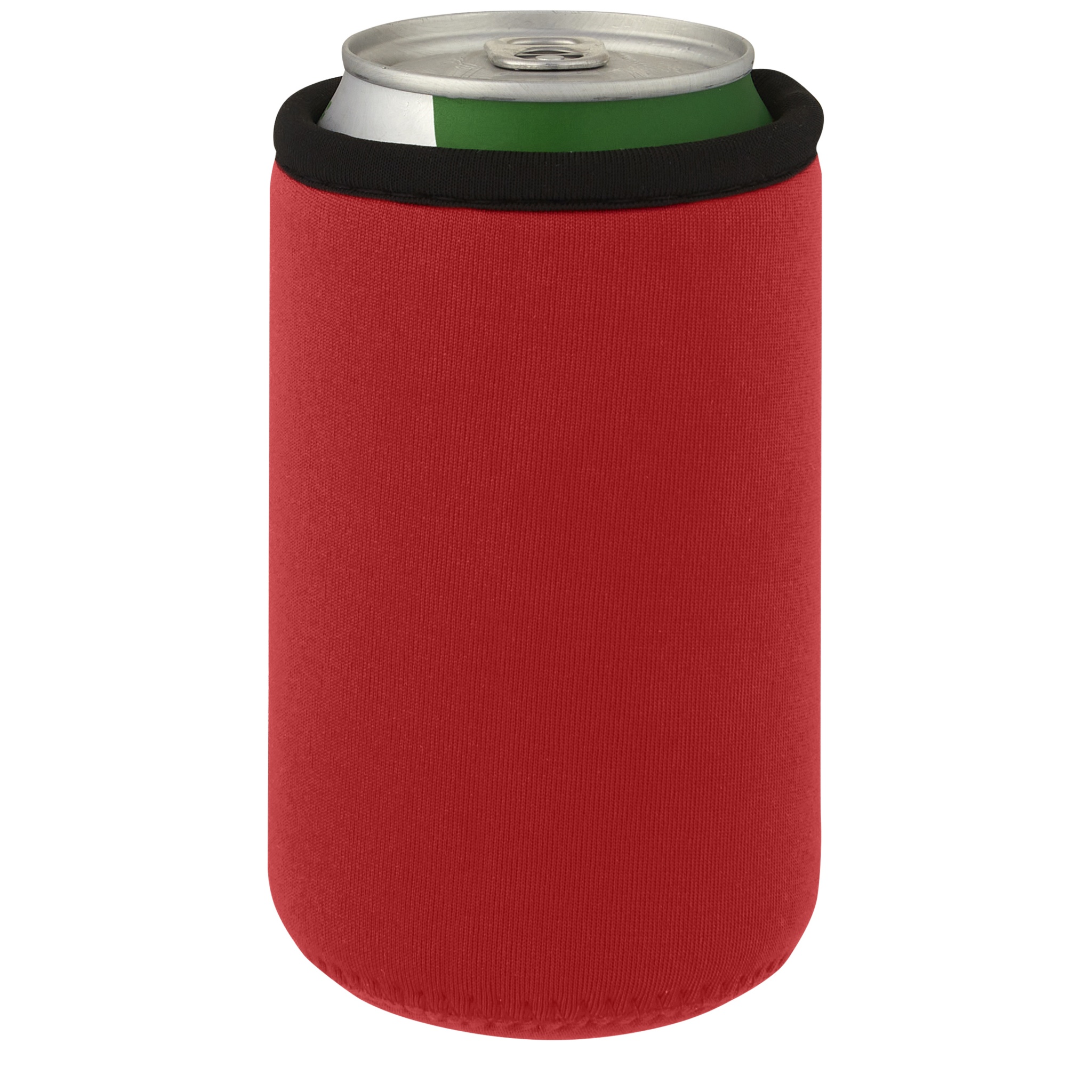 Juomatölkin jäähdytin kierrätetystä neopreenistä, joka mahtuu taiteltuna helposti taskuun tai laukkuun. Siinä oleva lisäeristys pitää juoman viileänä pidempään ja tekee tölkistä miellyttävän pidellä kädessä.
