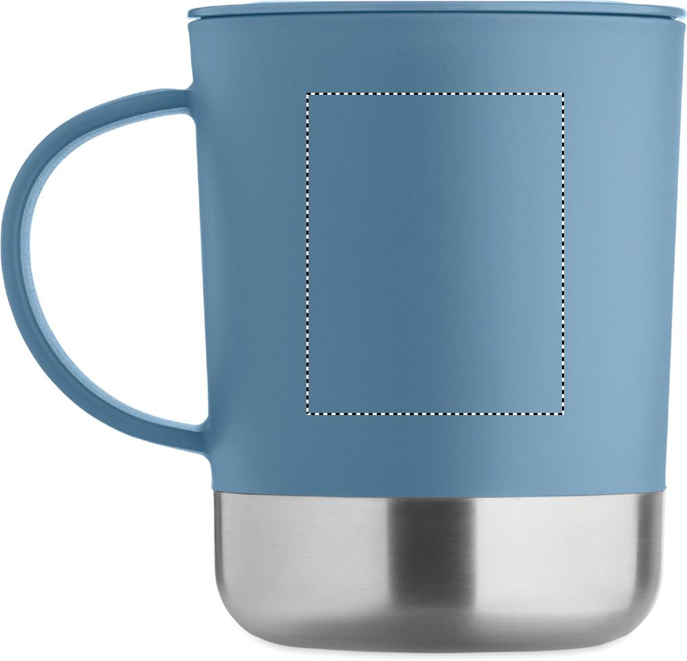 PP-muki, jossa on kierrätetystä ruostumattomasta teräksestä valmistettu pohja (90 % kierrätettyä ruostumatonta terästä ja 10 % ruostumatonta terästä) ja PP-liukukansi. Tilavuus: 300 ml.