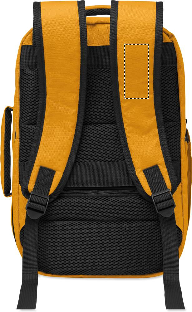 Rankinio bagažo kuprinė, pagaminta iš 600D RPET poliesterio, su 180° atidarymu. Turi pagrindinį skyrių su dviem atvirais skyriais, tinklelio pertvarą, paminkštintą 15 colių nešiojamojo kompiuterio kišenę ir bagažo dirželį.