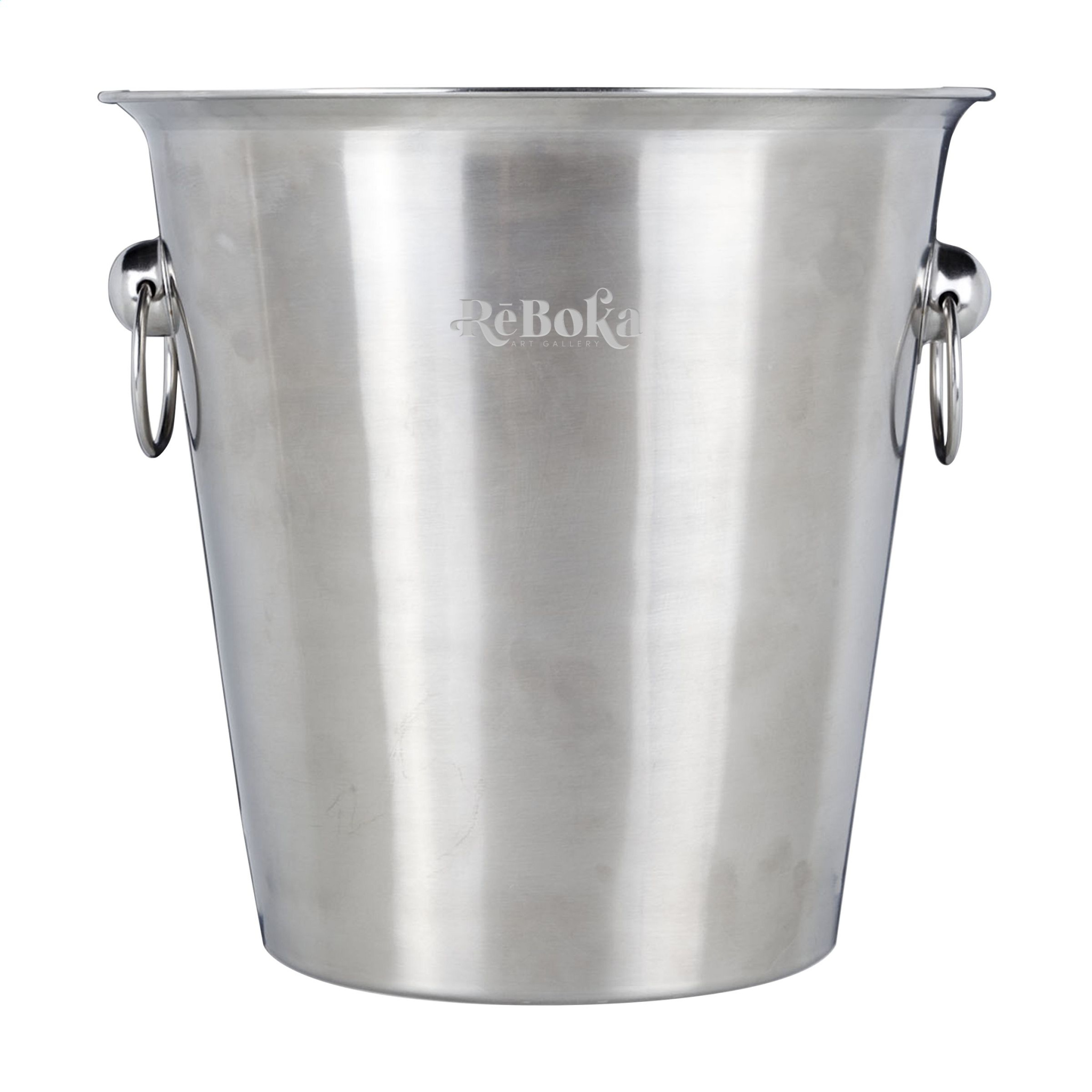 Lengvas, nerūdijančio plieno šampano aušintuvas/ledo kibiras su žiedinėmis rankenomis. Užpildykite ledu arba vandeniu, kad gėrimai būtų vėsūs. Šis aušintuvas suteikia asmeninio prisilietimo, kai pristatomas šampano ar vyno butelis. Praktiškas ledo kibiras, skirtas naudoti įvairiomis progomis. Talpa 4,5 litro.