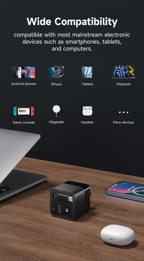 Susipažinkite su išmaniausiu 65 W įkrovikliu su laidu, kuris visada po ranka, kai jo reikia. „Mendocino“ yra 65 W PD GaN įkroviklis su įmontuotu 80 cm ištraukiamu USB-C laidu, todėl galite įkrauti net nesigriebdami atskiro laido. Jis taip pat tiekiamas su keičiamais ES ir JK kištukais, todėl yra puikus kelionių palydovas. „GaN“ yra naujos kartos įkrovimo technologija, užtikrinanti kompaktiškesnį dydį, mažiau šilumos ir didesnį energijos vartojimo efektyvumą. „Mendocino“ visu greičiu įkrauna visus jūsų įrenginius, įskaitant nešiojamuosius kompiuterius, planšetinius kompiuterius ir telefonus, ir gali maitinti iki trijų įrenginių vienu metu dėl papildomų USB-C prievadų ir USB-A išvesties. „Mendocino“ pagamintas iš RCS (perdirbto teiginio standarto) sertifikuoto perdirbto ugniai atsparaus kompiuterio. Bendras perdirbto kiekio kiekis: 18 %, remiantis bendru prekės svoriu. „Urban Vitamin“ gaminiai pagaminti be PVC ir supakuoti į plastiko mažinimo pakuotes.