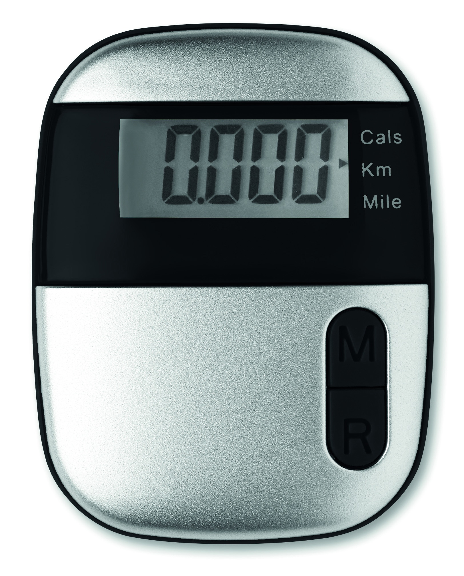 Žingsniamatis su segtuku ABS korpuse. Su žingsniu, atstumu (myliomis ir kilometrais) ir kalorijų skaitikliu, 1 elemento baterija.