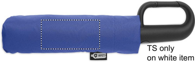 Salokāms 21 collu vēja necaurlaidīgs lietussargs ar pilnībā melnu stiklšķiedras rāmi ar 2 sekcijām. Stiklšķiedras ribas. 190T RPET pongee paneļi. D formas karabīnes rokturis ar gumijas apdari. Automātiska atvēršana un aizvēršana. Komplektā iekļauta kabata.