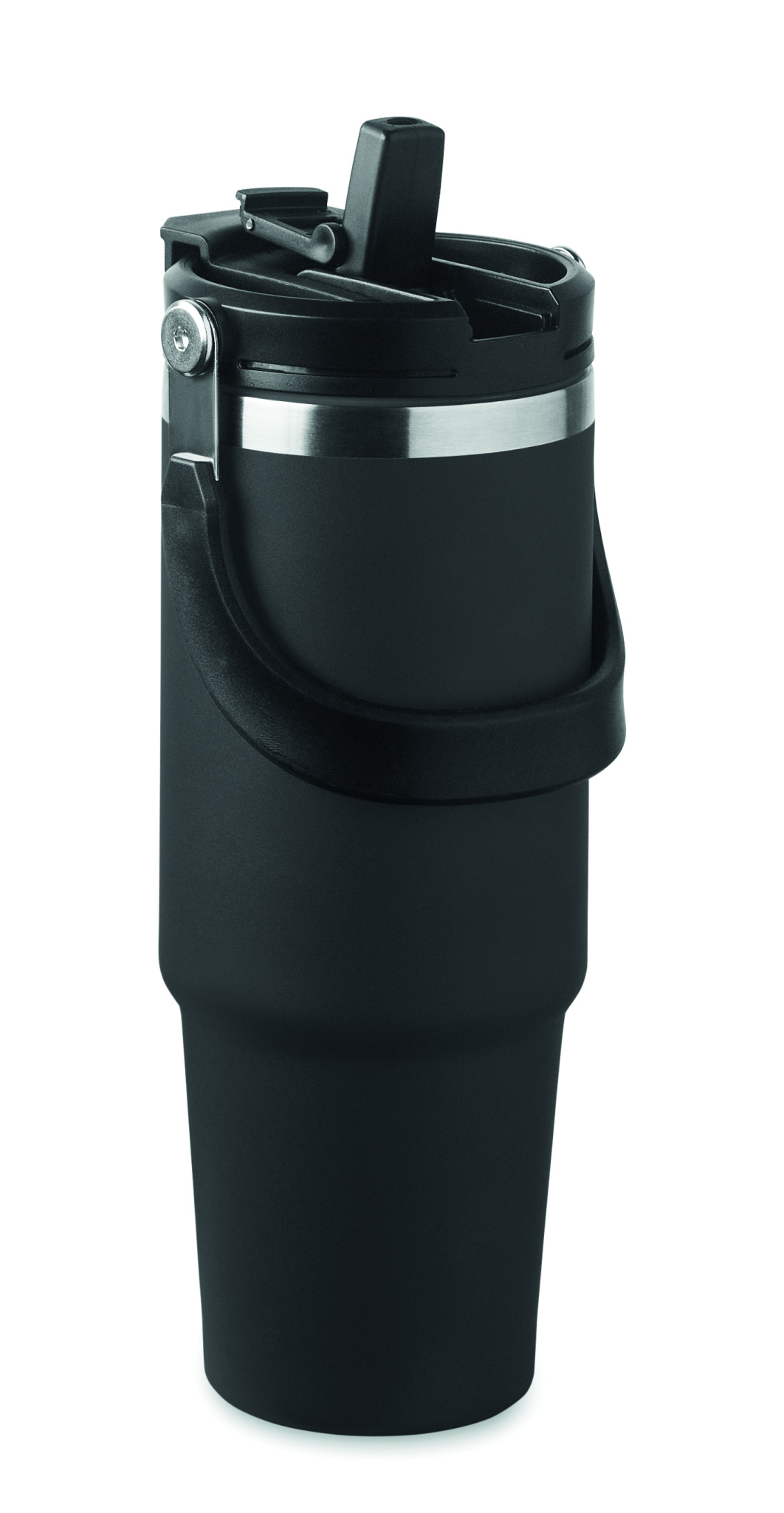 Divsienu pārstrādāta nerūsējošā tērauda (90% pārstrādāta nerūsējošā tērauda un 10% nerūsējošā tērauda) trauks ar vāku ar iekšējiem salmiņiem, salokāmu mutes uzgali un tiešu dzeršanas atveri. Tilpums 850 ml.