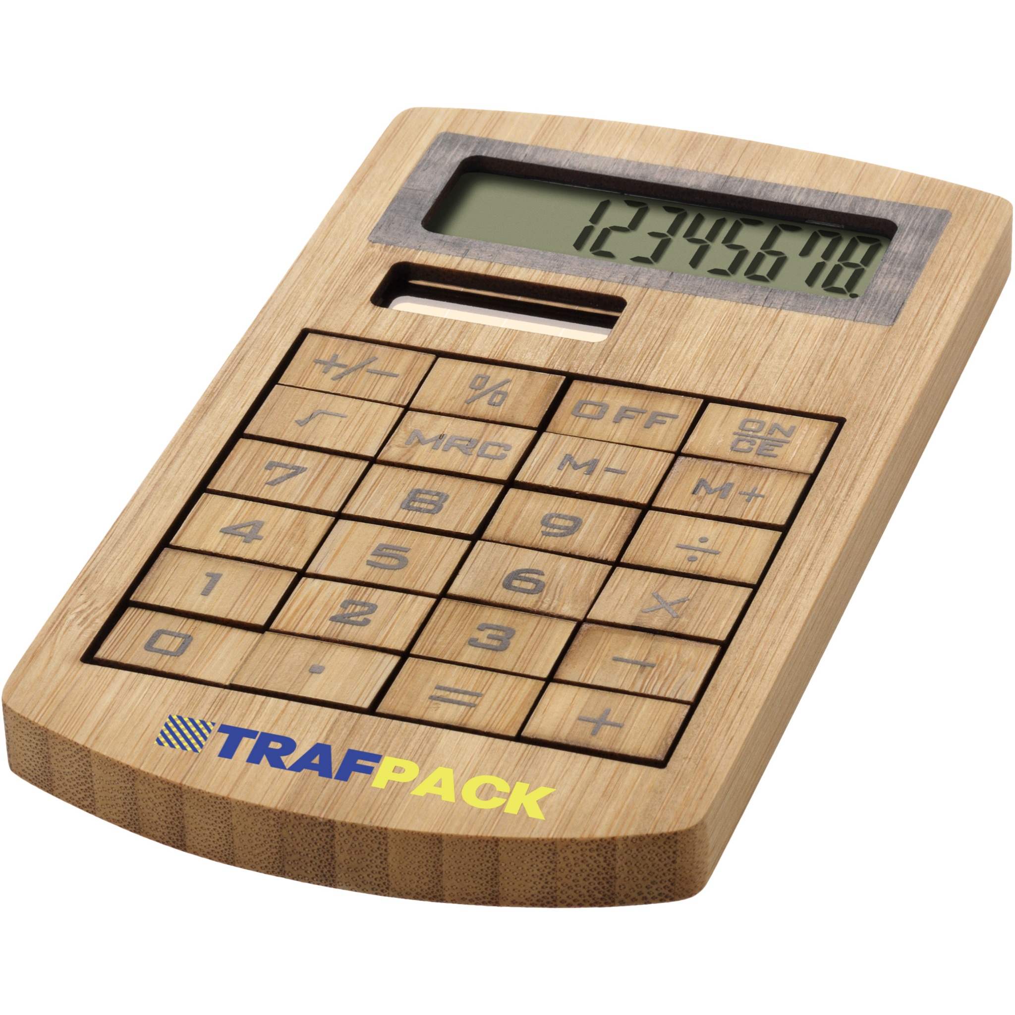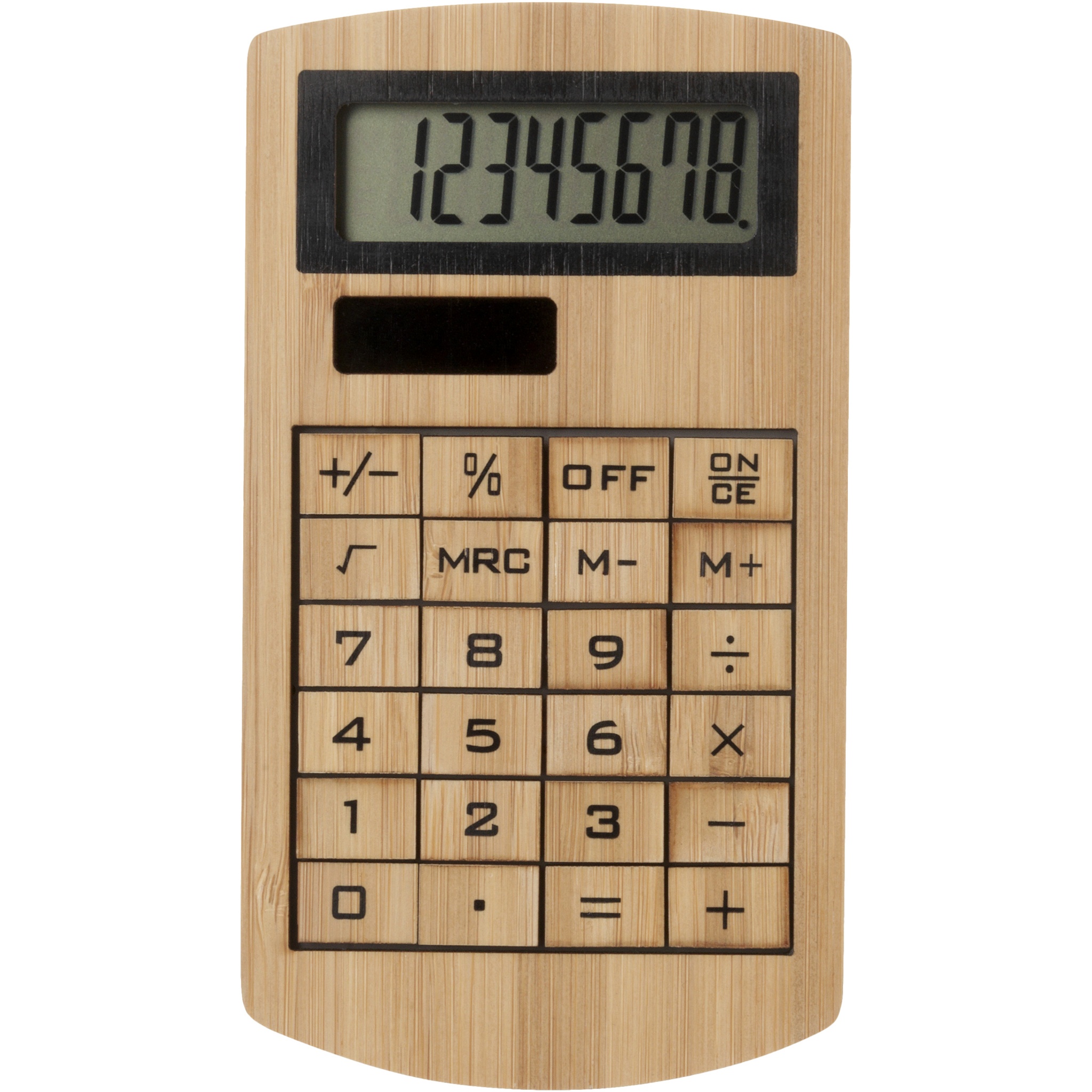 8 ciparu videi draudzīgs bambusa kalkulators. Darbojas ar saules enerģiju.
