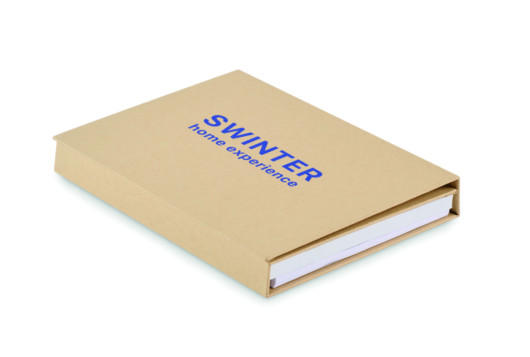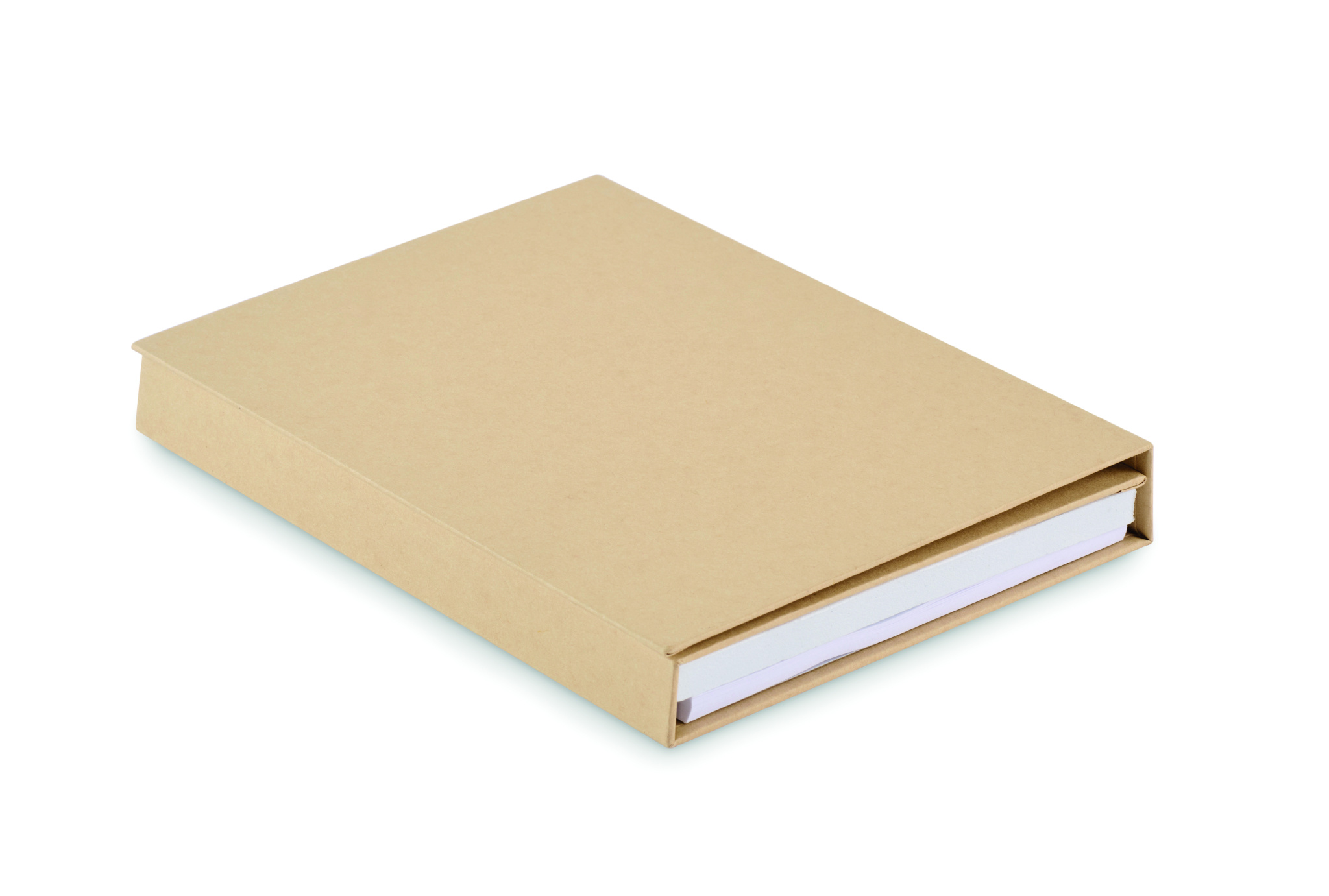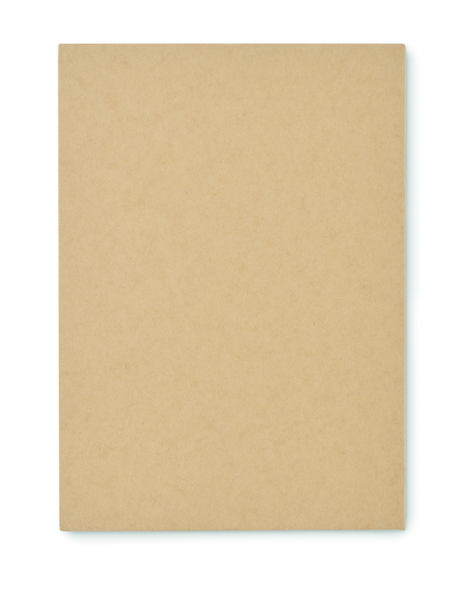 Stacionārs bloknotu komplekts ar pārstrādāta kartona vāku. 70 oderētas pārstrādātas loksnes. Piezīmju bloki un lapu marķieri. Stūmojama lodīšu pildspalva ar papīra mucu un ABS detaļām, ABS asināmais, 2 koka zīmuļi, 15 cm koka lineāls un PP transportieri.