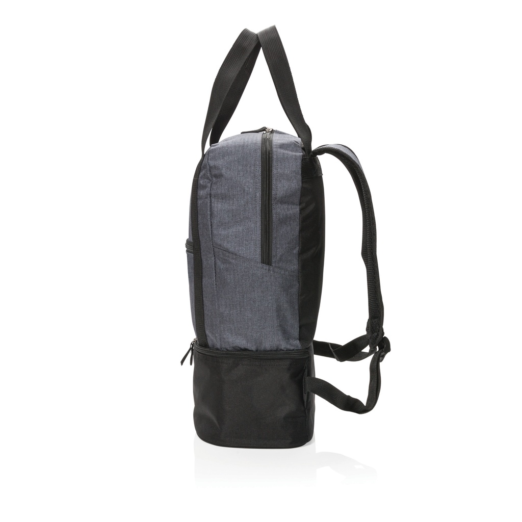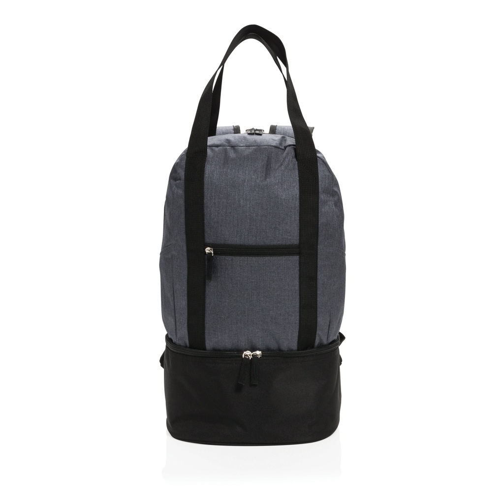 Этот двухцветный рюкзак из полиэстера 500D имеет основное отделение для пляжных принадлежностей и нижнее отделение-холодильник с местом для 8 банок. Легко трансформируется в сумку-тоут с помощью ремней.